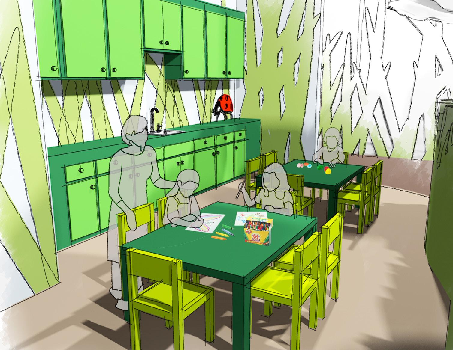 The arts and crafts area provides an open-ended platform that allows children to express their creativity and imagination through art.
