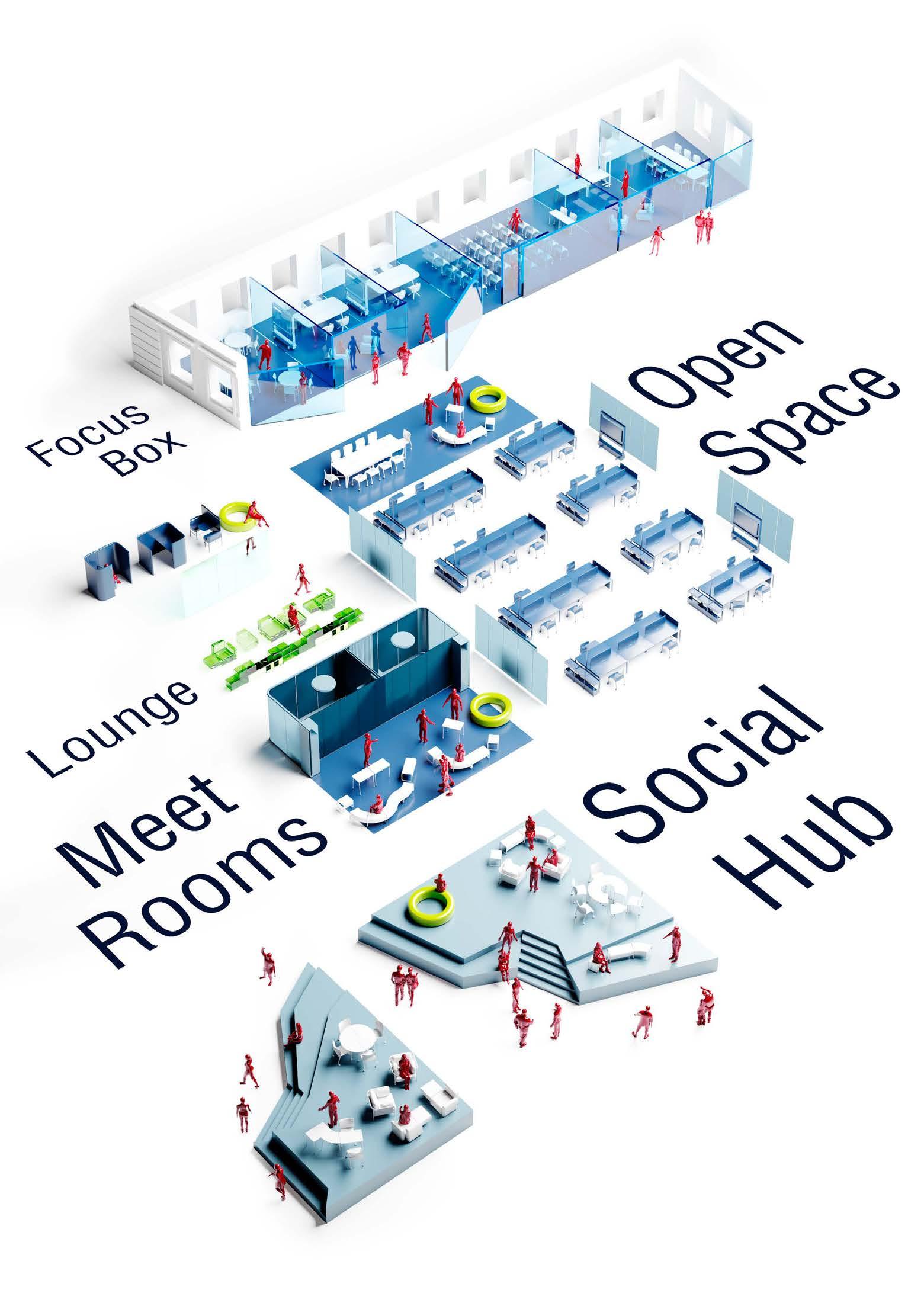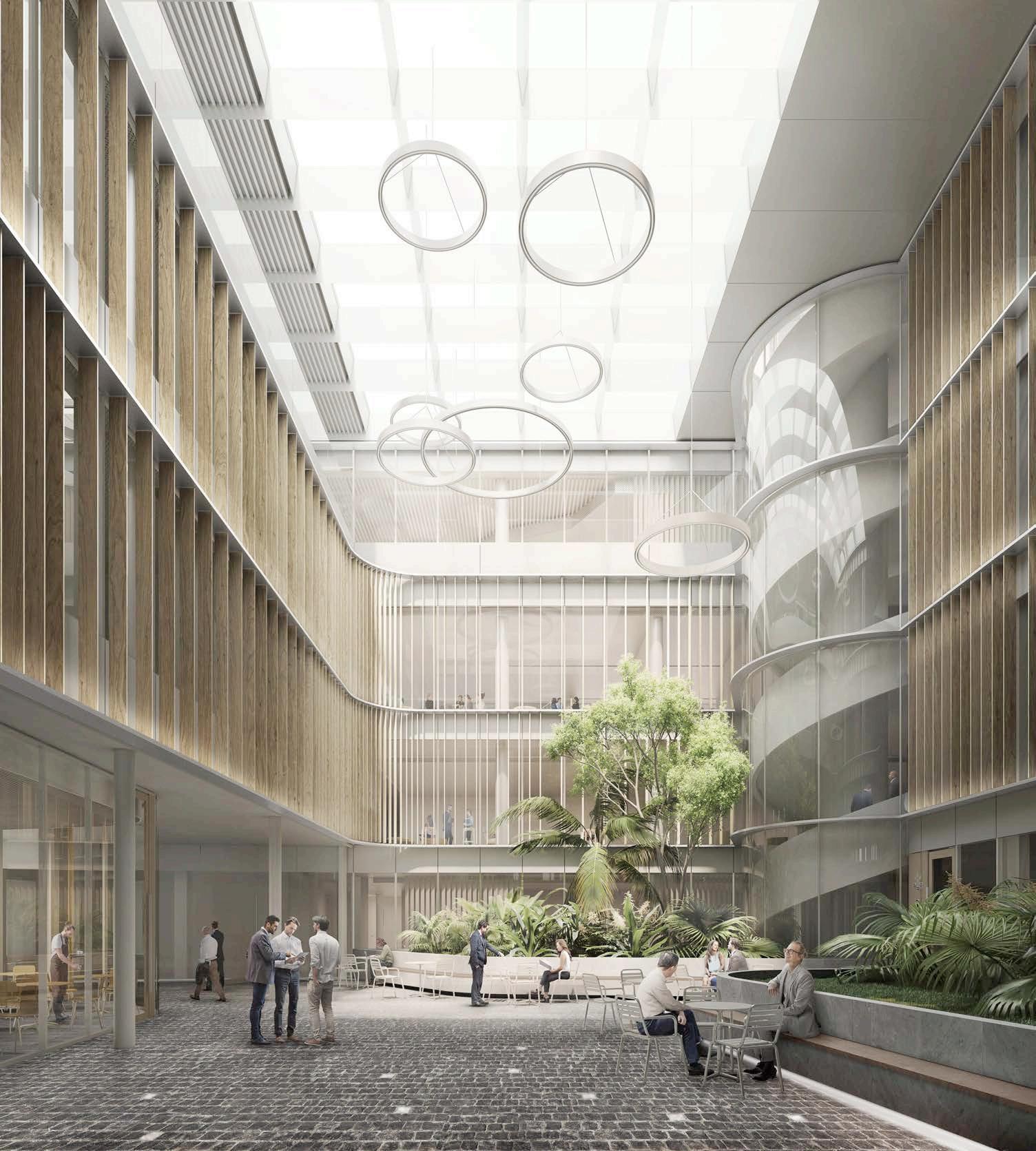 The renovated building wants to open its doors to everyone and will house new, state-of-theart private office space. In addition, it will offer a new, urban living experience through a number of semi-public spaces, which will enrich the quality of everyday life for its users and enliven the neighborhood.
