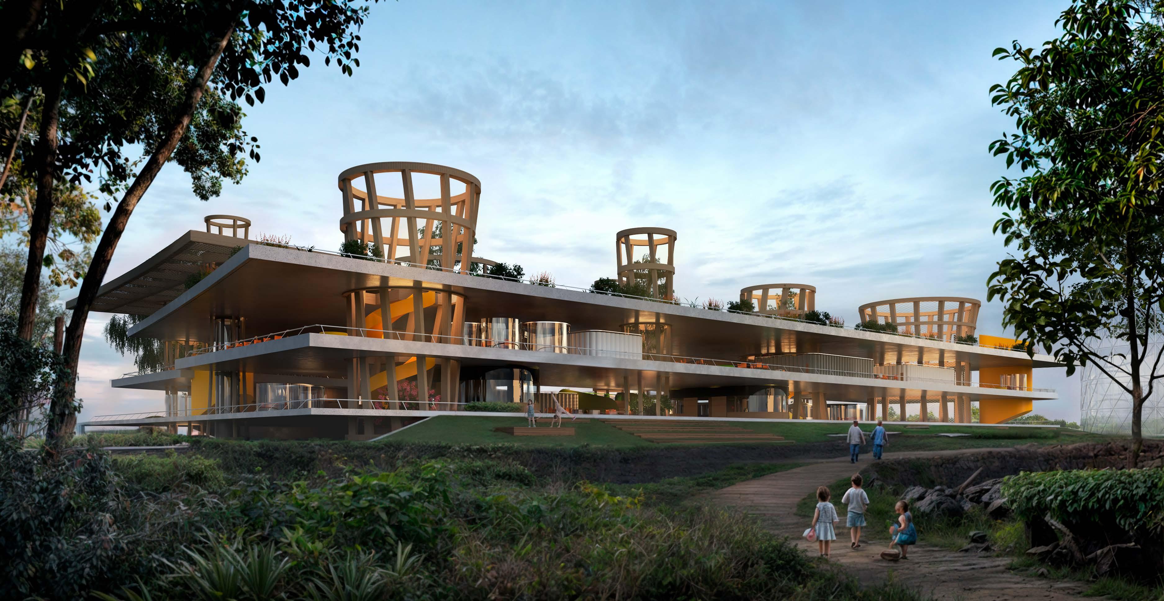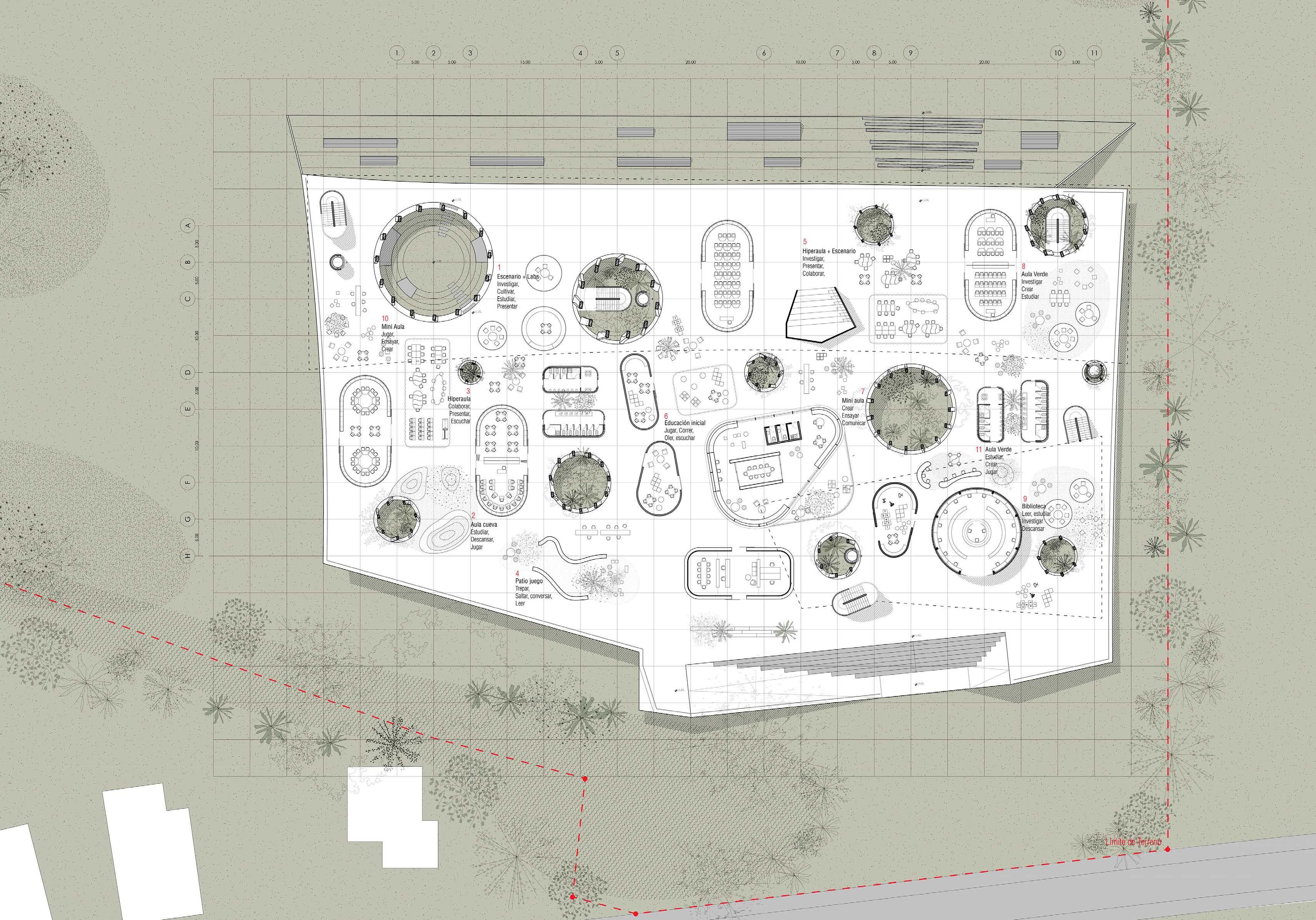This design encourages continous interaction with the landscape, creating an inmersive learning experience. It establishes a direct relationship with courtyards situated within the internal voids, representing an inside-out learning journey.