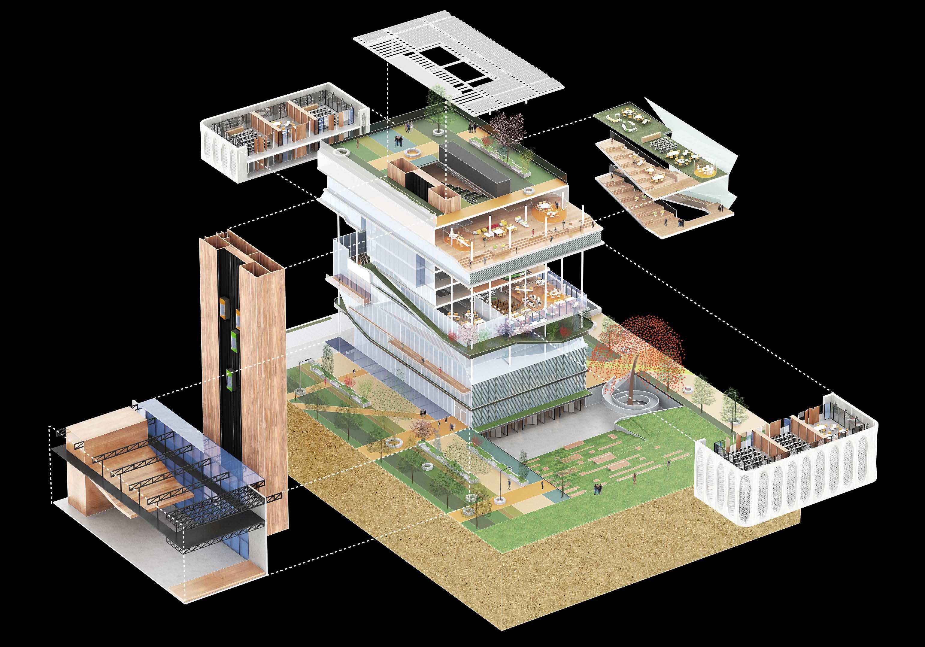 This learning system is structured as a series of innovative fluid, solid and dispersed programs strategically positioned across the school’s campus. The vision aims to elevate the building to the role of a “third professor” and integrate it into the curriculum.