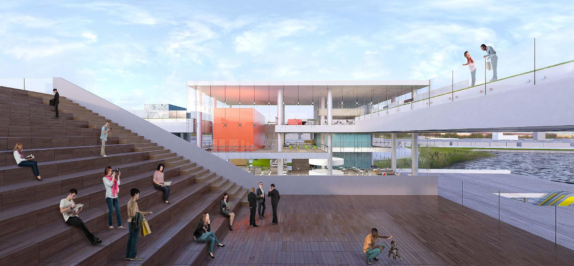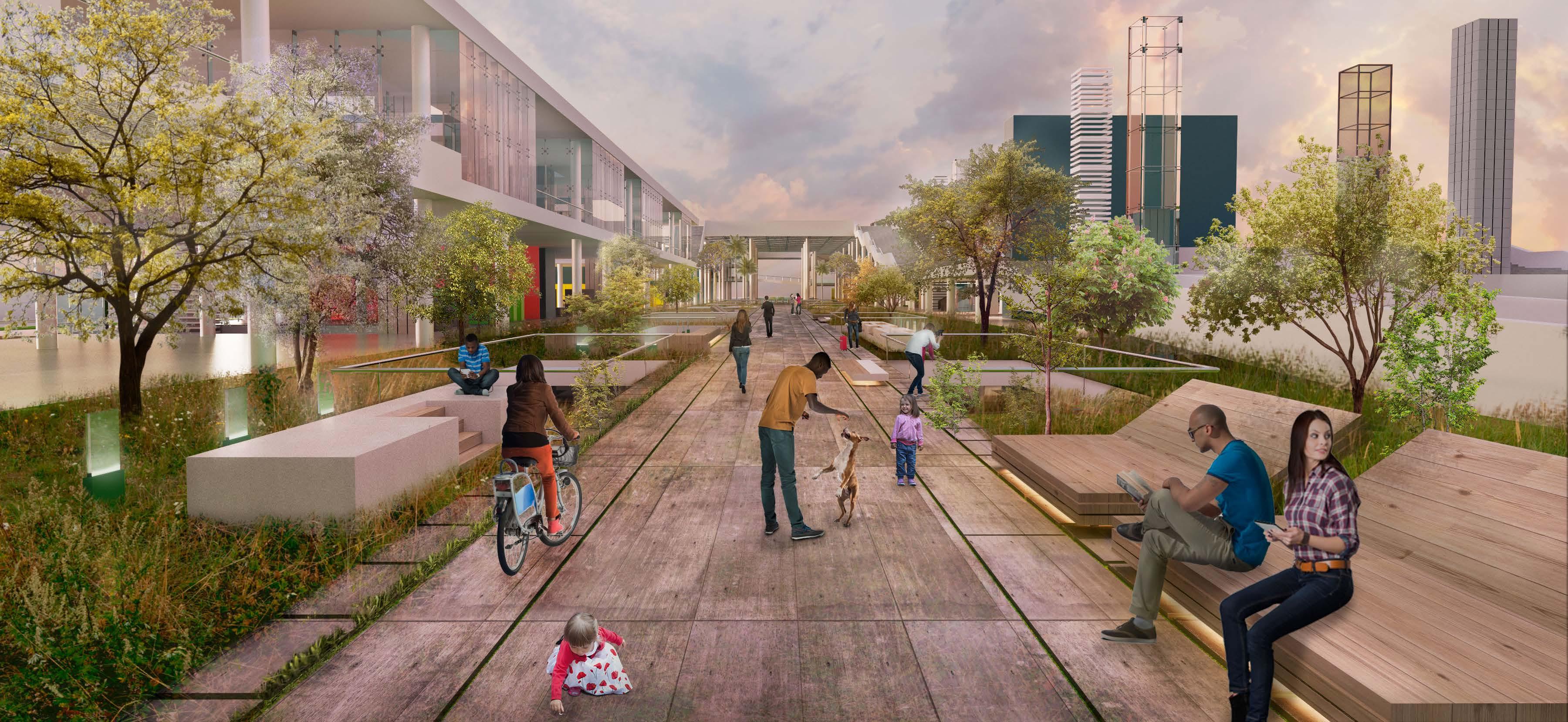 can be freely interpreted, allowing pedestrians to linger or stroll by. It will have an informal and friendly atmosphere, with water, greenery and plenty of natural light combined with natural materials such as wood and stone.