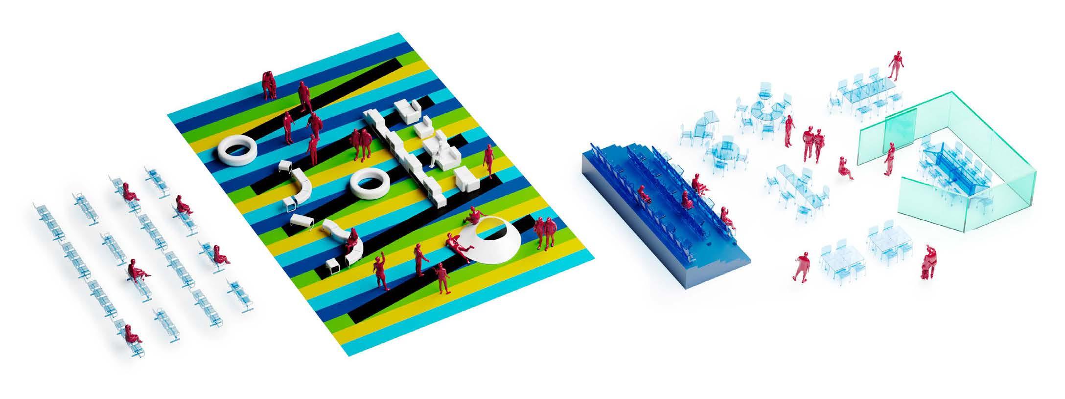 To blur or erase boundaries, space, and forms. The dissolution of matter represents the triumph of space over constraints. Spatial configuration can change, contracting or expanding based on the program. The program itself can be expressed as density, dispersion, or fluidity.