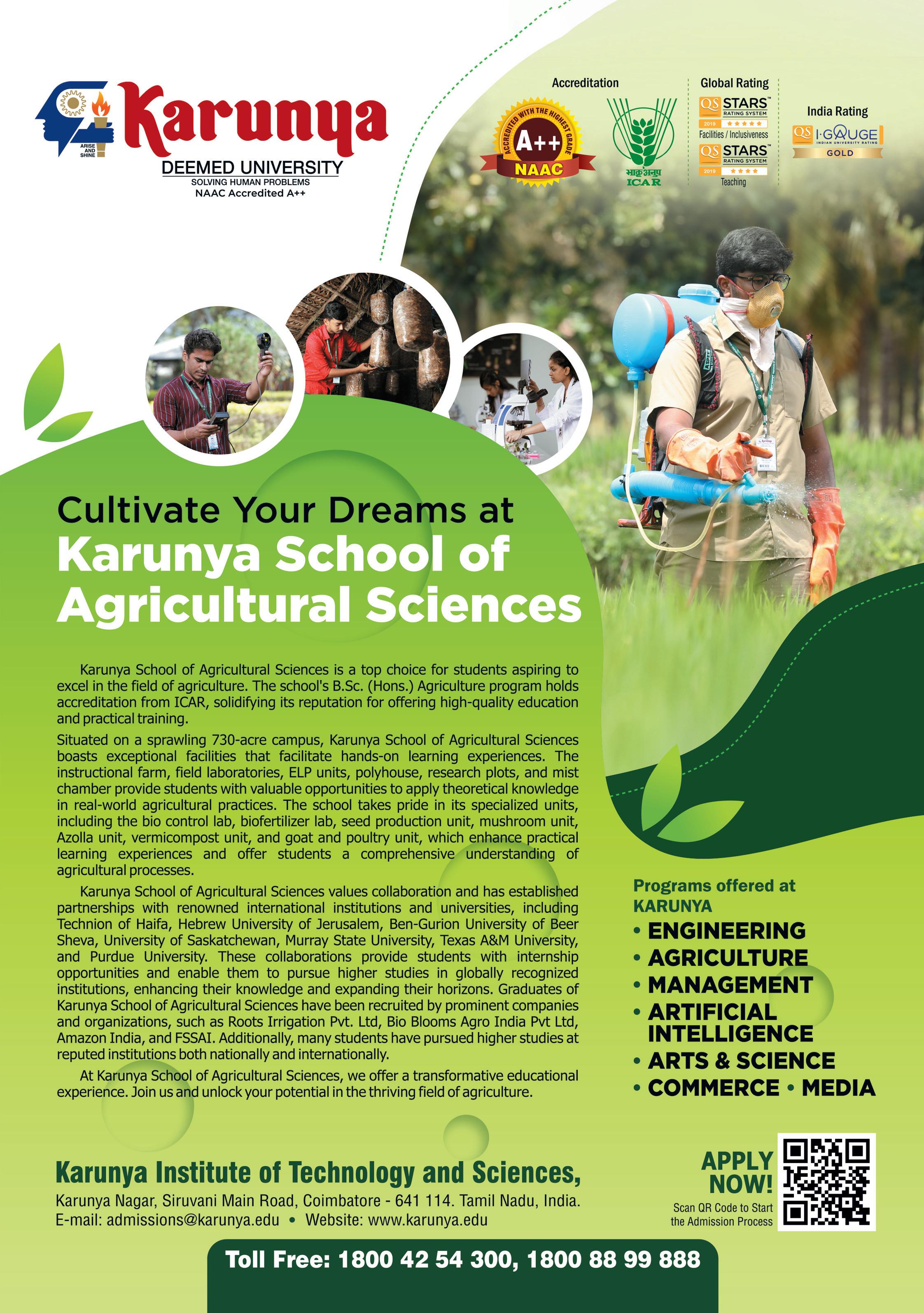Karunya University provides state-of-the-art facilities and comprehensive field training to nurture the best in our students. For more information and admissions, please visit www.karunya.edu.