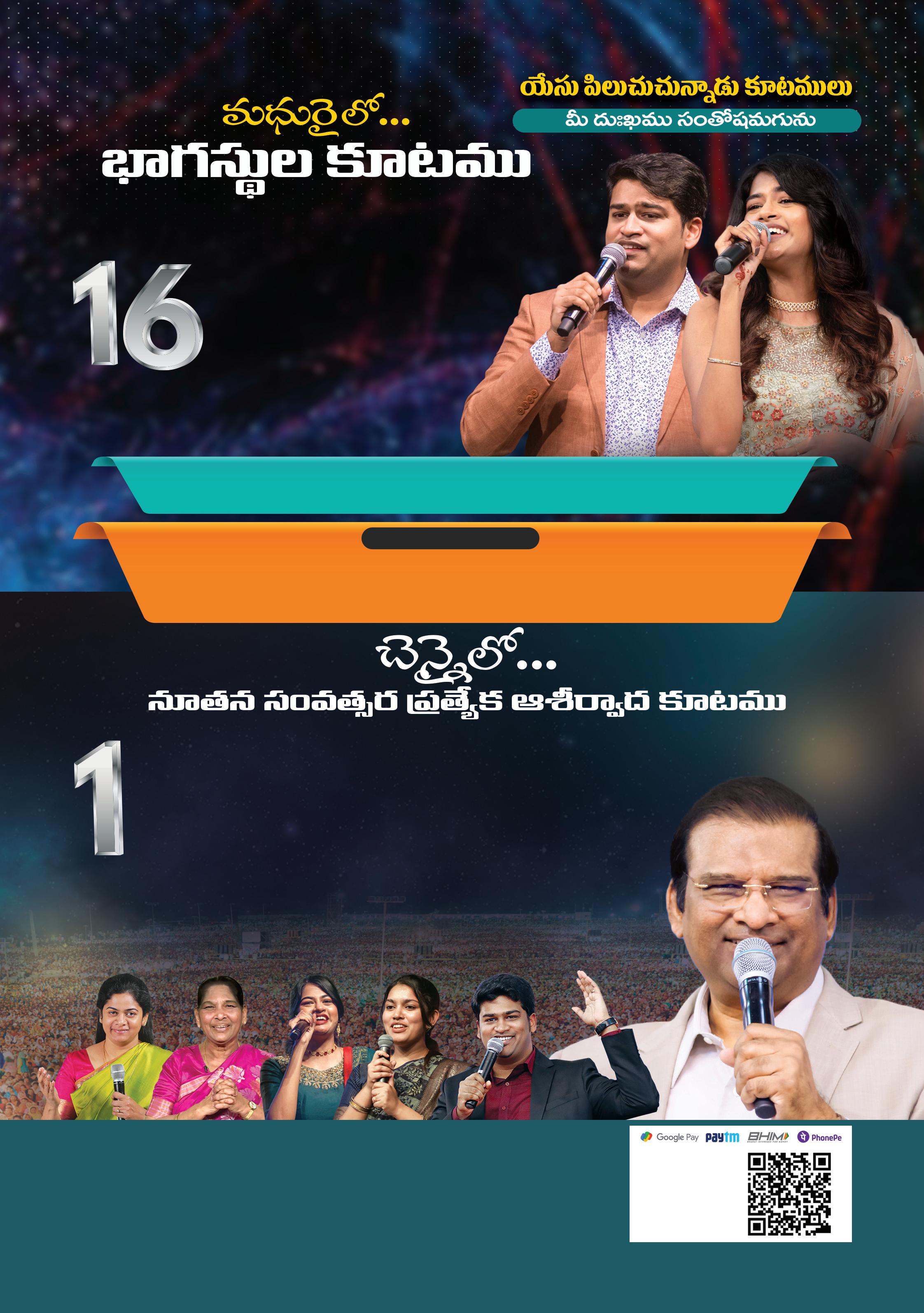ì$T‘·ÔeTT Äj·Tq≈£î k˛ÔÁ‘·eTT\T eT]j·TT Hê ø=s¡≈£î uÛ≤s¡eTT‘√ ÁbÕs¡úq #˚dæq ˇ+>√\T ÁbÕs¡úq >√|ü⁄s¡ ÁbÕs¡úq jÓ÷<ÛäT\≈£î Hê ø£è‘·»„‘·\T ‘Ó*j·TCÒj·TT#·THêïqT. ` {Ï.s¡eDeTà, ∫qï ø£qeT\¢, Á|üø±X¯+ õ˝≤¢.‘·ø£åDy˚T n<äT“¤‘·eTT H˚qT 1996 qT+&ç j˚TdüT |æ\T#·T#·THêï&ÉT n+u≤dæ&ÉsY>± ùde #˚j·TT#·THêïqT. <˚e⁄&ÉT Hê J$‘·eTT˝ÀqT eT]j·TT Hê ≈£î≥T+ãeTT˝ÀqT >=|üŒ n<äT“¤‘·eTT\qT »]–+#ê&ÉT. Hê ≈£îe÷s¡T&ÉT nH˚ø£ dü+e‘·‡s¡eTT\T>± ñ<√´>∑eTT \_Û+#·ø£ ìs¡T<√´–jÓÆT j·TT+&ÉT≥ e\q, Hê ≈£îe÷s¡T&ÉT dü+B|t ù|s¡T MT<ä ˇø£ j˚TdüT |æ\T#·T#·THêï&ÉT {Ï.$. ø±s¡´Áø£eTeTTqT kÕŒq‡sY #˚XÊqT. n<äT“¤‘·Ø‹>± Hê ≈£îe÷s¡T&ÉT Á|üU≤´‹>±+∫q eT©º H˚wüq˝Ÿ ø£+ô|˙˝À ñ<√´>∑eTTqT bı+<äTø=Hêï&ÉT. 2022, »qe] HÓ\˝À H˚qT |ü&çb˛j·÷qT eT]j·TT Hê uÛÑT»eTT≈£î >±j·TyÓTÆ, uÛÑ]+#·˝Òì H=|æŒ. &Üø£ºs¡T¢ eT+<äT\T Ç#êÃs¡T. nsTTqqT Ä H=|æŒ #ê˝≤ s√E\ es¡≈£î ‘·>∑Z˝Ò<äT. Ä düeTj·TeTT˝À Hê≈£î j˚TdüT |æ\T#·T#·THêï&ÉT BHEL ÄXÀø˘ q>∑sY ÁbÕs¡úq >√|ü⁄s¡eTT qT+&ç bò˛Hé e∫Ã+~. eT]j·TT BHEL ÄXÀø˘ q>∑sY ÁbÕs¡úq >√|ü⁄s¡eTT˝À dü«#·Ã¤+<äeTT>± ùde #˚ùd neø±X¯eTTqT yês¡T Hê≈£î Ç#êÃs¡T. H˚qT ÁbÕs¡úq >∑~˝À Á|üy˚•+∫q yÓTT<ä{Ï ~qeTTH˚ n<äT“¤‘·Ø‹>± Hê H=|æŒ e÷j·TyÓTÆb˛sTT+~. <˚e⁄ìøÏ k˛ÔÁ‘·eTT\T. j˚TdüT |æ\T#·T#·THêï&ÉT |ü]#·s¡´˝À <˚e⁄ì ùde #˚j·TT neø±X¯eTTqT Ç∫Ãq &܈ˆ bÕ˝Ÿ ~qø£s¡Hé ≈£î≥T+ãeTTq≈£î eT]j·TT ÁbÕs¡úq >√|ü⁄s¡ dæã“+~ÛøÏ Hê ø£è‘·»„‘·\T. `m.dü+JeeTà, ‘Ó\+>±D ìdü‡Vü‰j·T |ü]dæú‘·T\qT m<äTs=ÿqT#·Tqï|ü⁄Œ&ÉT, j˚TdüT |æ\T#·T#·THêï&ÉT ÁbÕs¡úq >√|ü⁄s¡eTT\T m\¢|ü⁄Œ&É÷ Á|ü|ü+#·yê´|üÔ+>± ø√{≤¢~ eT+~øÏ ÄÁX¯j·TeTTqT eT]j·TT z<ës¡TŒì#˚à Á|ü<˚X¯eTT>± ñ+≥Tqï$. Çø£ÿ&É ø£˙ïfi¯ó¢ ‘·T&ç∫y˚j·Tã&ÉT#·Tqï$ eT]j·TT nH˚≈£î\ Vü≤<äj·TeTT\˝À ìØø£åD ì+|üã&ÉT#·Tqï~. ÁbÕs¡úq jÓ÷<ÛäT\T @ø£eTqdüT‡‘√ nedüs¡eTT˝ÀqTqï yê] ø=s¡≈£î uÛ≤s¡+‘√ ÁbÕ]ú+∫q|ü⁄Œ&ÉT n<äT“¤‘ê\T »s¡T>∑T#·THêïsTT. <˚e⁄&ÉT ‘·q yê>±›Hêìï m˝≤ HÓs¡y˚s¡TkÕÔ&√ eT]j·TT ÁbÕs¡úq >√|ü⁄s¡eTT\ <ë«sê }Vü≤≈£î n+<äì n<äT“¤‘ê\qT m˝≤ #˚düTÔHêï&ÉT nH˚~ ì»+>± ÄX¯Ãs¡´ø£s¡eTT>± ñqï~. ÁøÏ+<ä Çe«ã&çq kÕøå±´\T MTs¡T ≈£L&É n<äT“¤‘·eTTqT bı+<äTq≥T¢>± MT $XÊ«düeTTqT ã\|üs¡#·TqT. ∫s¡THêe÷: j˚TdüT |æ\T#·T#·THêï&ÉT ÁbÕs¡úq >√|ü⁄s¡+ D.No.37-1-4-(161), yÓTT<ä{Ï n+‘·düTÔ, nqïes¡bÕŒ&ÉT, b˛dtº Ä|ò”düT ˝…’Hé, ‘·÷s¡TŒ KB Á|üø£ÿq, ≥HÓï˝Ÿ s√&é, ˇ+>√\T, Ä+Á<Ûä Á|ü<˚XŸ ` 523001. bò˛Hé HÓ+ãsY: 63807 52205 / 85922 80600 ˇ+>√\TÁbÕs¡úq>√|ü⁄s¡+,Ä+Á<ÛäÁ|ü<˚XŸ ∫s¡THêe÷: j˚TdüT |æ\T#·T#·THêï&ÉT ÁbÕs¡úq >√|ü⁄s¡+ HÓ+. 22`102, ø£qT≈£î+≥, NH 9, >∑+<∏äeTà >∑T&ç m<äTs¡T>±, sêeT#·+Á<ë|ü⁄s¡+ b˛dtº, BHEL nXÀø˘ q>∑sY, ôV’≤<äsêu≤<é, ‘Ó\+>±D ` 502032 bò˛Hé : 63817 54559 BHEL nXÀø˘q>∑sYÁbÕs¡úq>√|ü⁄s¡+,‘Ó\+>±D 24 j˚TdüT |æ\T#·T#·THêï&ÉT nø√ºãsY 2022 - www.prayertoweronline.org/te
