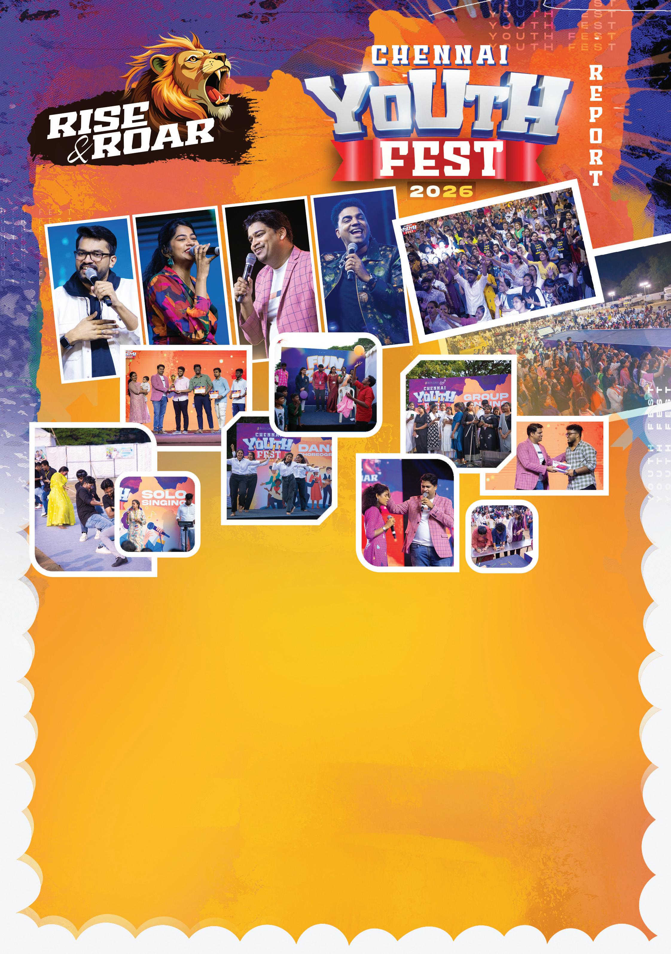 The Chennai Youth Fest, held on 3 January 2026 at the YMCA Ground, Nandanam, Chennai, was a vibrant and spiritually renewing gathering for young people across the city. Thousands participated both in person and online via YouTube, united in encouraging creativity, fellowship, and wholehearted devotion to God. From 3:00 PM to 6:00 PM, engaging games and talent competitions including Bible Quiz, group and solo performances, Tug of War, Kahoot, Stand-up, and Lucky Dip created an atmosphere of joy and camaraderie.