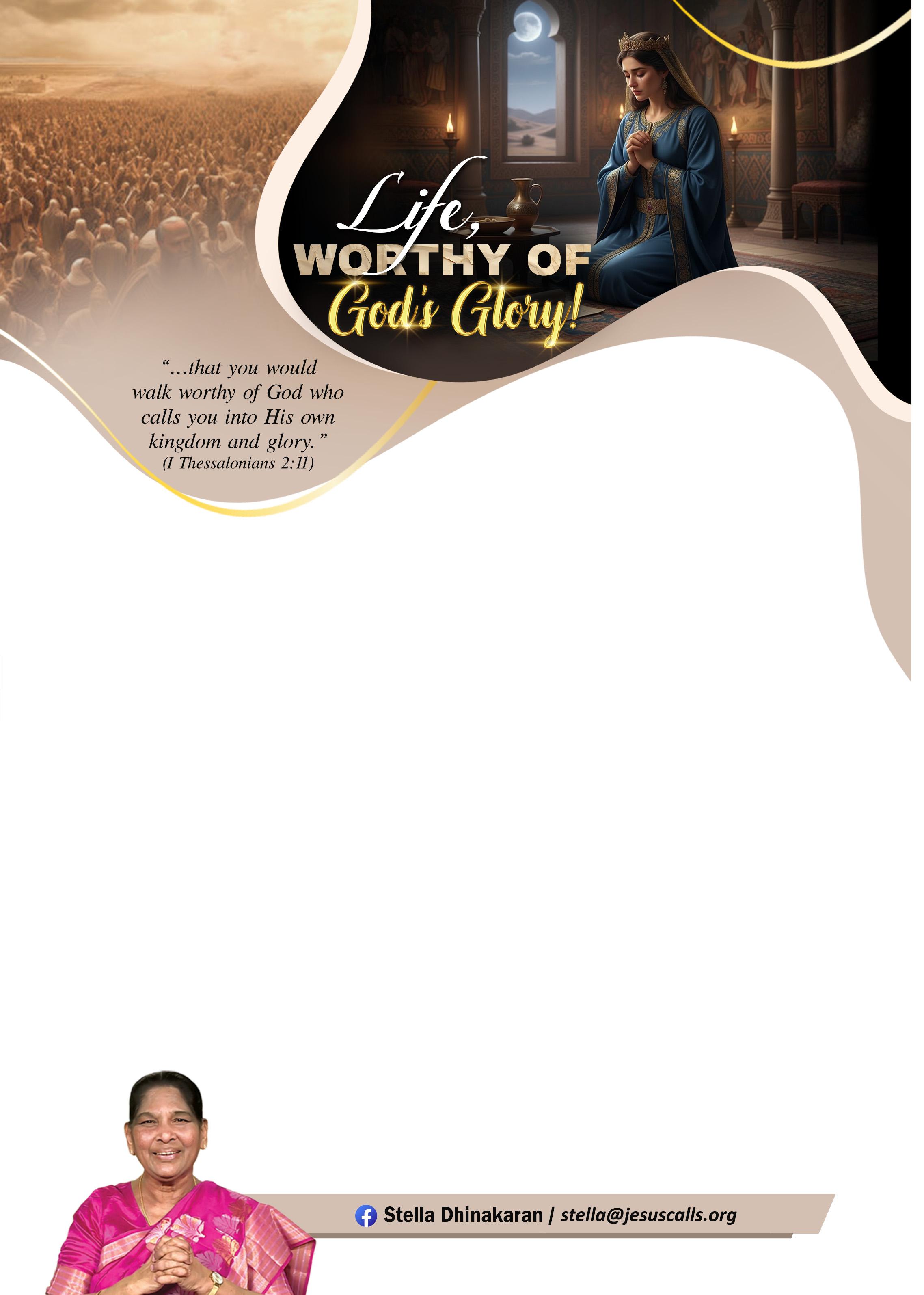 Read the Book of Esther in the Bible! Esther was an ordinary Jewish woman. She got the privilege of becoming a queen purely by the favour of God. However, a grave problem followed her. There was a wicked man by name Haman who wanted to destroy the Jewish people. When he plotted to destroy the Jews completely, Queen Esther fasted and prayed at the feet of God for three days, along with her friends. As a result, the Lord did a great miracle and destroyed Haman and his household and protected the Jewish people from destruction. In the same way, today, thousands of people are being destroyed in many ways. Young people are ruined. Dear ones,
