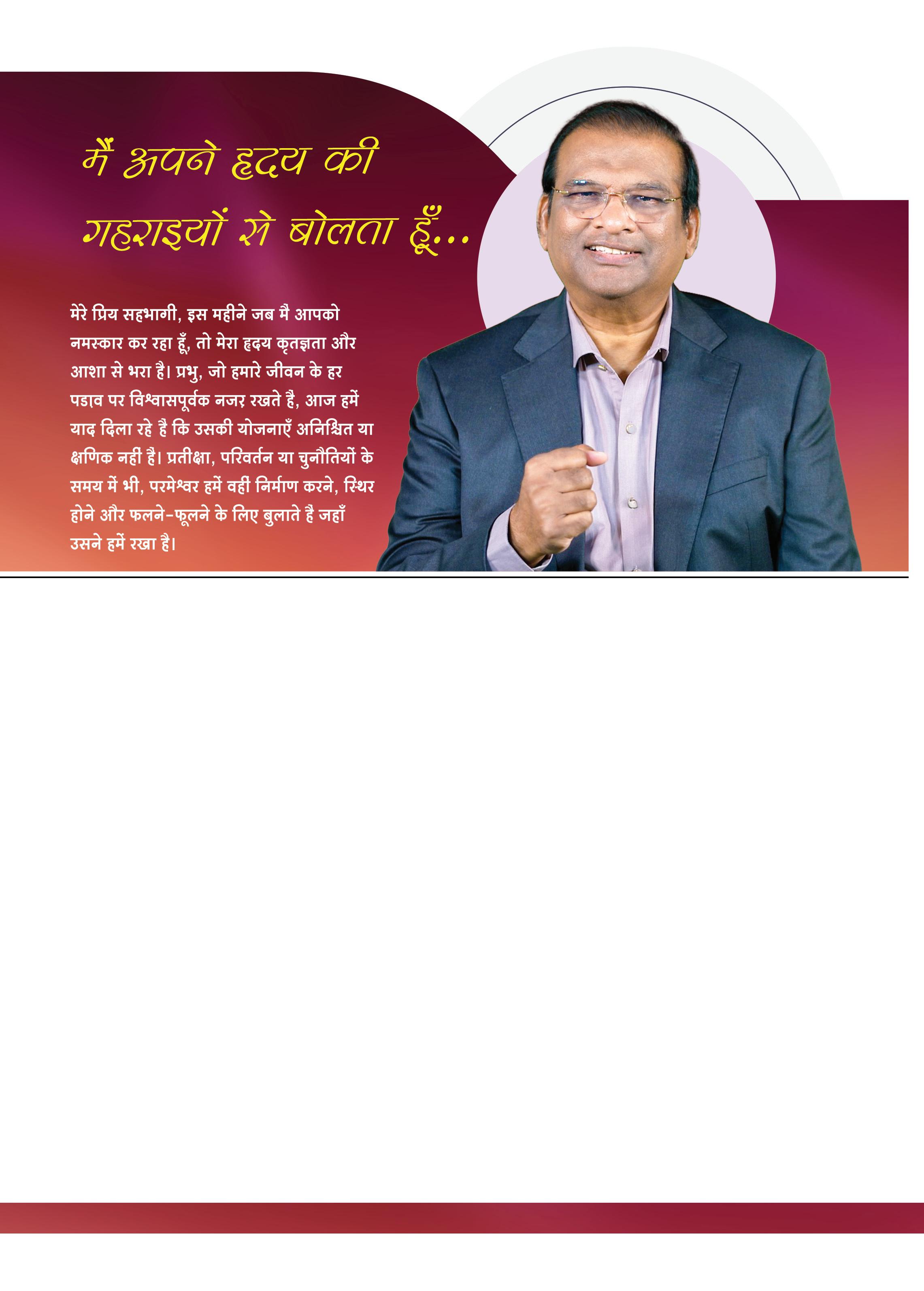 AmÜ`m{Ë_H$ OrdZ H$r ewéAmV _o§ {gImB© Wr& à^w Eogo n{dÌ OrdZ go ào_ H$aVo h¡§ (_bmH$r 2:11)& O~ Amn AnZo H$nS>µmo§, ì`dhma Am¡a ~mVmo§ _o§ n{dÌ hmo§Jo, Vmo à^w Amngo àgÞ hmo§Jo& {Z{üV ên go, Amn CgHo$ {bE EH$ Eogm nmÌ ~Z OmE§Jo Omo Cgo àgÞ H$aVm h¡ (2 Vr_w{W`wg 2:21; B{\${g`mo§ 5:3,4)& `rew AŠga _{a`_ Am¡a _mW©m Ho$ Ka OmVo Wo& _{a`_, _mW©m Am¡a bmOa `rew go ~hwV ß`ma H$aVo Wo& _mW©m ImZm ~ZmZo H$m H$m_ g§^mbVr Wr& bo{H$Z _{a`_ à^w Ho$ MaUmo§ go _O~yVr go {MnH$r ahVr Wr& `hr g\$bVm H$m ahñ` h¡ Omo _¡§Zo ^r AnZo OrdZ _o§ grIm h¡& Mmho> h_o§ H$moB© ^r ~r_mar hmo `m H$moB© ^r H${R>ZmB© hmo, _¡§ Vwa§V CgH$r Cn{ñW{V _o§ KwQ>Zo Qo>H$ XoVm Wm& {à`, Š`m Amn ~moP Am¡a {M§Vm _o§ hmo? g~go nhbo KwQ>Zo Qo>Ho$§& na_oœa go g^r ~mVmo§ Ho$ ~mao _o§ ~mV H$ao§& dh Eogo na_oœa h¡§ Omo Amn OrV {XbmVo h¡§& dh AmnH$r àmW©ZmE± gwZo§Jo Am¡a AmnH$mo Odm~ Xo§Jo& dh AmnHo$ n{adma H$r g^r g_ñ`mAmo§ H$mo ~Xb Xo§Jo& dh AmnH$r EH$ àmW©Zm `moÕm