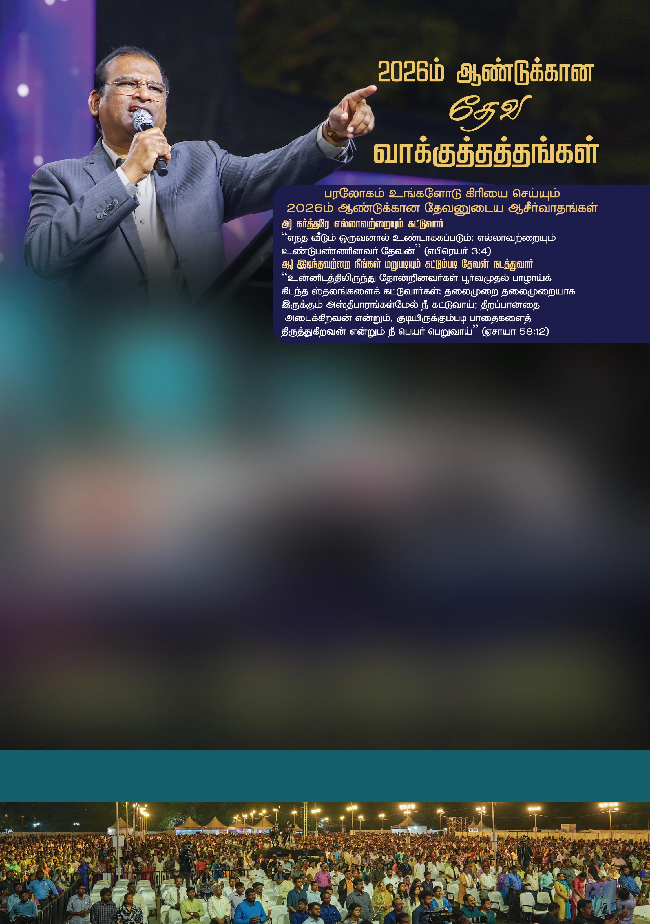 2026 #dtÇ 4« njâ, br‹id, eªjd« xŒ.v«.á.V. ikjhd¤âš el¤j¥g£l òJtUl ngÇ‹g bgUÉHh, »¿Þjt®fË‹ I¡»a¤â‰F khâÇahf mikªjnjhL, MÉ Ãiwªj brŒâÆdhY« MuhjidÆdhY« kw¡fKoahj khiyntisahfî« mikªjJ. gšntW âU¢rigfis nr®ªj, ghu«gÇa§fis¡ bfh©l Vw¡Fiwa 12,000 ng®, 2026 ò¤jh©oš njtDila tÊfh£Ljiyí« gÇóuz MÓ®thj§fisí« bg‰W¡bfhŸS« xnu ïUjaK« neh¡fK« bfh©lt®fshf To tªjd®. Vw¡Fiwa 7 y£r«ng® gšntW r_f Clf js§fŸ thÆyhf ïiza« _y« ïizªâUªjd®. nghjf® Mãufh« jhkÞ, Ãfœ¢áÆ‹ mid¤J¥ gFâfisí« M©ltU¡F m®¥g¤J VbwL¤j Mu«g b#g¤Jl‹ Ãfœ¢á bjhl§»aJ. Rev. D. nkhf‹, I¡»a »¿Þjt mU£gÂiaí«, njr¤ijí« njtD¡F K‹ghf ca®¤â, tU« M©oš Úâ tÊel¤jnt©Lbk‹W ãuh®¤â¤jh®. 2026« M©oš x›bthU ÉRtháí« njt uh{a¤â‰fhf ghLgLtjhš, všyh âU¢rigfS« CÊa§fS« fd¤âdhš KoN£l¥glnt©Lbk‹W«, njr« vG¥òjiyí« Rf¤ijí« bjŒåf ghJfh¥igí« mDgÉ¡fnt©L« v‹W« nguha® fâbuhË kh¡f« nt©Ljš brŒjh®. njrbk§FKŸs ÃWtd§fS¡fhfî«, r_f ey Þjhgd§fS¡fhfî« Rev. #h© F. fhny¥ C¡fkhf b#ã¤jh®. njr¤â‹nkš gÇR¤j MÉahdt® tšyikahf C‰w¥glnt©Lbk‹W nghjf® n#hÞth ÞOg‹ b#ã¤jh®. khkiwâU A. ghš ~¥uh‹áÞ uÉ¢rªâu‹, tšyikahd C¡FÉ¡F« th®¤ijfis g»®ªJbfh©L, k¡fŸ ÉRthr¤njhL K‹nd¿¢ bršY«nghJ f®¤j®jhnk mt®fS¡fhf í¤j« brŒth® v‹W To tªâUªnjhU¡F Ãidî¥gL¤âdh®. 2026« ò¤jh©il xUĤJ bfh©lhL«Éjkhf nf¡ bt£l¥g£lnghJ rªnjhõ« ikjhd« KGtijí« Ãiw¤jJ.