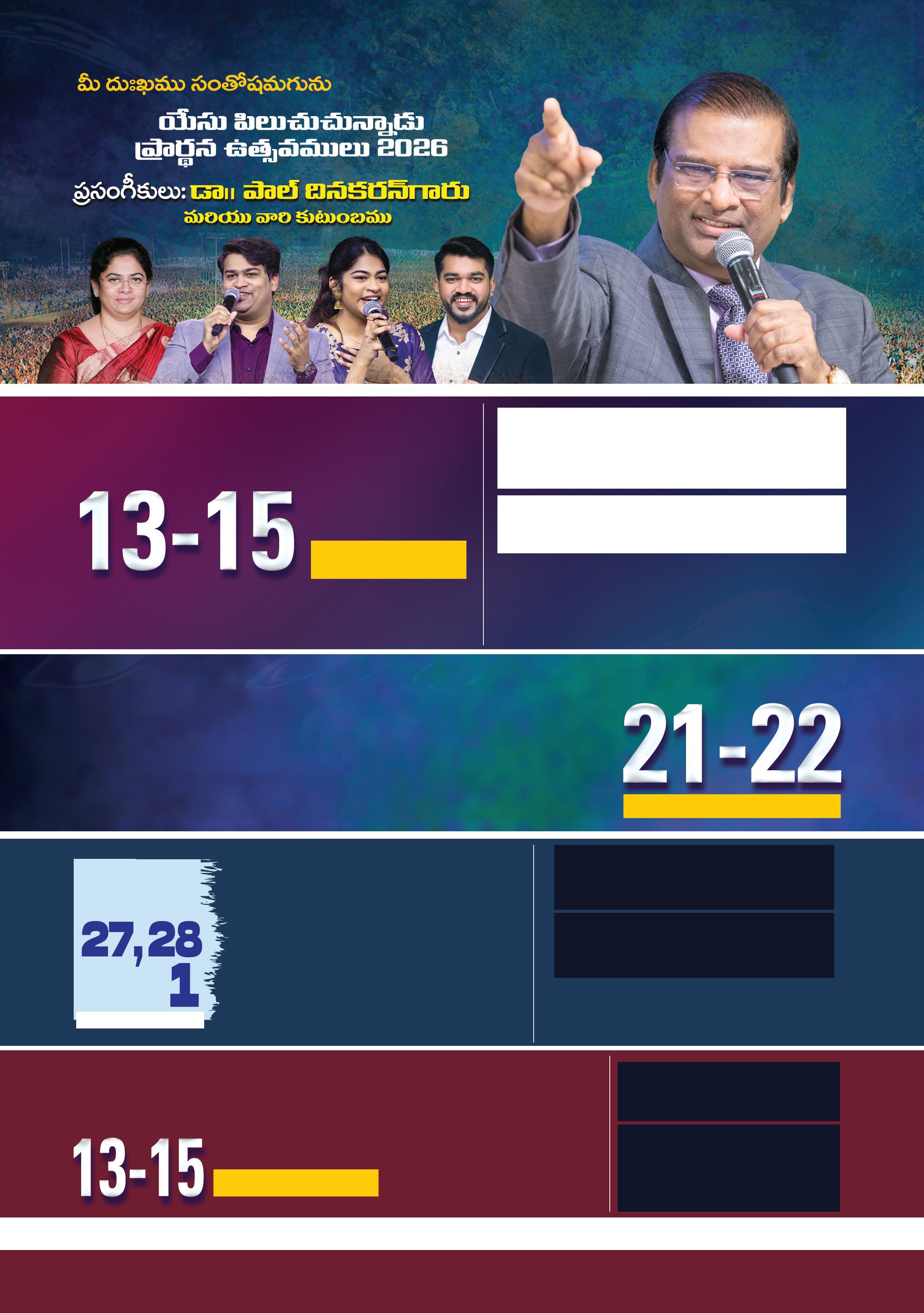 2026, »qe] 3e ‘˚Bq #ÓHÓ’ï˝Àì q+<äq+ nqT ÁbÕ+‘·eTT˝ÀqTqï YMCA yÓTÆ<ëqeTT˝À ìs¡«Væ≤+#·ã&çq #ÓHÓ’ï j·T÷‘Y ô|òdtº, q>∑s¡eTT˝ÀqTï j·TÚeqdüTú\≈£î ñ‘ê‡Vü≤eTTqT eT]j·TT Ä<Ûë´‹àø£ Äosê«<äeTTqT n+~+#ÓqT. dü »Hê‘·àø£‘·qT, düVü≤yêdüeTTqT eT]j·TT <˚e⁄ì |ü≥¢ Vü≤ <äj·T|üPs¡«ø£ uÛÑøÏÔì Áb˛‘·‡Væ≤+#·T#·T, y˚˝≤~ eT+~ á ≈£L≥eTT˝À e´øÏÔ>∑‘·+>±qT eT]j·TT j·T÷≥÷´uŸ <ë«sê ÄHé˝…’Hé˝ÀqT bÕ˝§ZHêïs¡T. eT<Ûë´Vü≤ï+ 3:00 >∑+≥\ qT+&ç kÕj·T+Á‘·+ 6:00 >∑+≥\ es¡≈£î, u…’_˝Ÿ øÏ«CŸ, Á>∑÷|t eT]j·TT k˛˝À Á|ü<äs¡Ùq\T, ≥>¥ Ä|òt yêsY, Kahoot, kÕº+&é-n|t eT]j·TT \ø°ÿ &ç|t e+{Ï Ä≥\T eT]j·TT Á|ü‹uÛÑ b˛{°\T ìs¡«Væ≤+#·ã&ÓqT. n$ dü+‘√wüø£s¡yÓTÆq eT]j·TT ùdïVü≤|üPs¡«ø£yÓTÆq yê‘êes¡DeTTqT dü wæº+#ÓqT. kÕj·T+Á‘·|ü⁄ Äsê<Ûäq, bÕdüºsY »dæºHé XÊy˚T´˝Ÿ>±] ÁbÕs¡úq‘√ ÁbÕs¡+uÛÑyÓTÆ+~, ‘·s¡Tyê‘· bÕdüºsY u…˙ï C≤wüßyê H˚‘· ‘·«+˝À n<äT“¤‘·yÓTÆq Äsê<Ûäq »]–+#·ã&çq~. ø±s¡TD´ ÇHédæº≥÷´{Ÿ Ä|òt f…ø±ï\J n+&é ôd’Hé‡ ø£fi≤XÊ\ $<ë´s¡Tú\T |ü]X¯ó<äΔyÓTÆq J$‘·eTT eT]j·TT <Ó’Mø£ $\Te\ô|’ J$‘·eTT\qT |ü⁄q]ï]à+#·Tø=qT≥qT >∑÷]à X¯øÏÔe+‘·yÓTÆq Hê{Ïø£qT Á|ü<ä]Ù+#ês¡T. Äsê<Ûäq Hêj·T≈£î˝…’q ôdº˝≤¢ s¡yÓ÷˝≤ eT]j·TT &˚ìj·T˝Ÿ &˚$&édüHé Ä ‘·s¡Tyê‘·, ≈£L&ç e∫Ãq yê]ì n_Ûùwø£eTT‘√ ì+|üã&çq Äsê<Ûäq˝À q&ç|æ+#ês¡T. jÓTwüj·÷ 60:22 e#·qeTT Ä<Ûës¡eTT>± dü¨ˆˆ XÊy˚T´˝Ÿ ~qø£s¡Hé n+~+∫q eTTK´ dü+<˚X¯eTT˝À, j·T<∏ës¡ú‘· eT]j·TT ìC≤sTTrøÏ ÁbÕ<Ûëq´‘·ì∫Ã, dü‘·«s¡ e÷s¡ZeTT\qT $&ç∫ô|{Ϻ, dü‘·´ dü«s¡÷|æjÓÆTq Ä‘·à˝À q&ÉeeTì (jÓ÷Vü‰qT 16:13) j·TTe‘·qT Áb˛‘·‡Væ≤+#ês¡T. eT‘·ÔsTT 25:21 eT]j·TT 1 ù|‘·Ts¡T 4:10 e#·qeTT\ qT+&ç, <˚e⁄&ÉT ‘êqT |æ*∫q yê]ì jÓ÷>∑T´\qT>± #˚j·TTqì Äj·Tq ≈£L&ç e∫Ãq yê]øÏ C≤„|üø£eTT #˚ôdqT. X¯øÏÔe+‘·yÓTÆq kÕø£å´eTT\T: *nbıdüÔ\T\ ø±s¡´eTT\T 2:17 qT+&ç düü¨ˆˆ XÊy˚T´˝Ÿ ~qø£s¡Hé, Á|üe#·Hê‘·àø£eTT>± Á|üø£{Ï+∫q Á|üø±s¡+, #ÓHÓ’ï˝Àì ‘·+&Éj·÷sYù|≥ nqT ÁbÕ+‘·eTTq≈£î #Ó+~q düüü¨<ä] Ä+Á&çj·÷, yÓTT<ä{Ï kÕ] ìj·T+Á‹+#·˝Òq+‘· n_Ûùw≈£eTTqT bı+<äTø=ì, nq´uÛ≤wü\˝À e÷≥˝≤&çq≥T¢>± kÕø£å´$T#êÃs¡T. *eTs=ø£ dü¨<ä] kÕø£å´$T#·TÃ#·T, >∑‘· dü+e‘·‡s¡eTT˝À ø±\T X¯ÁdüÔ∫øÏ‘·‡ »]–q+<äTq eT]j·TT Ä‘·àVü≤‘·´ Á|üj·T‘·ïeTT #˚dæq+<äTq ‘êqT y˚>∑+>± q&Ée˝Òø£b˛j·÷qìj·TT eT]j·TT ìØø£åDqT ø√˝ÀŒj·÷qìj·TT #Ó|æŒ+~. nsTT‘˚ <˚e⁄ì Äsê~Û+#·T≥