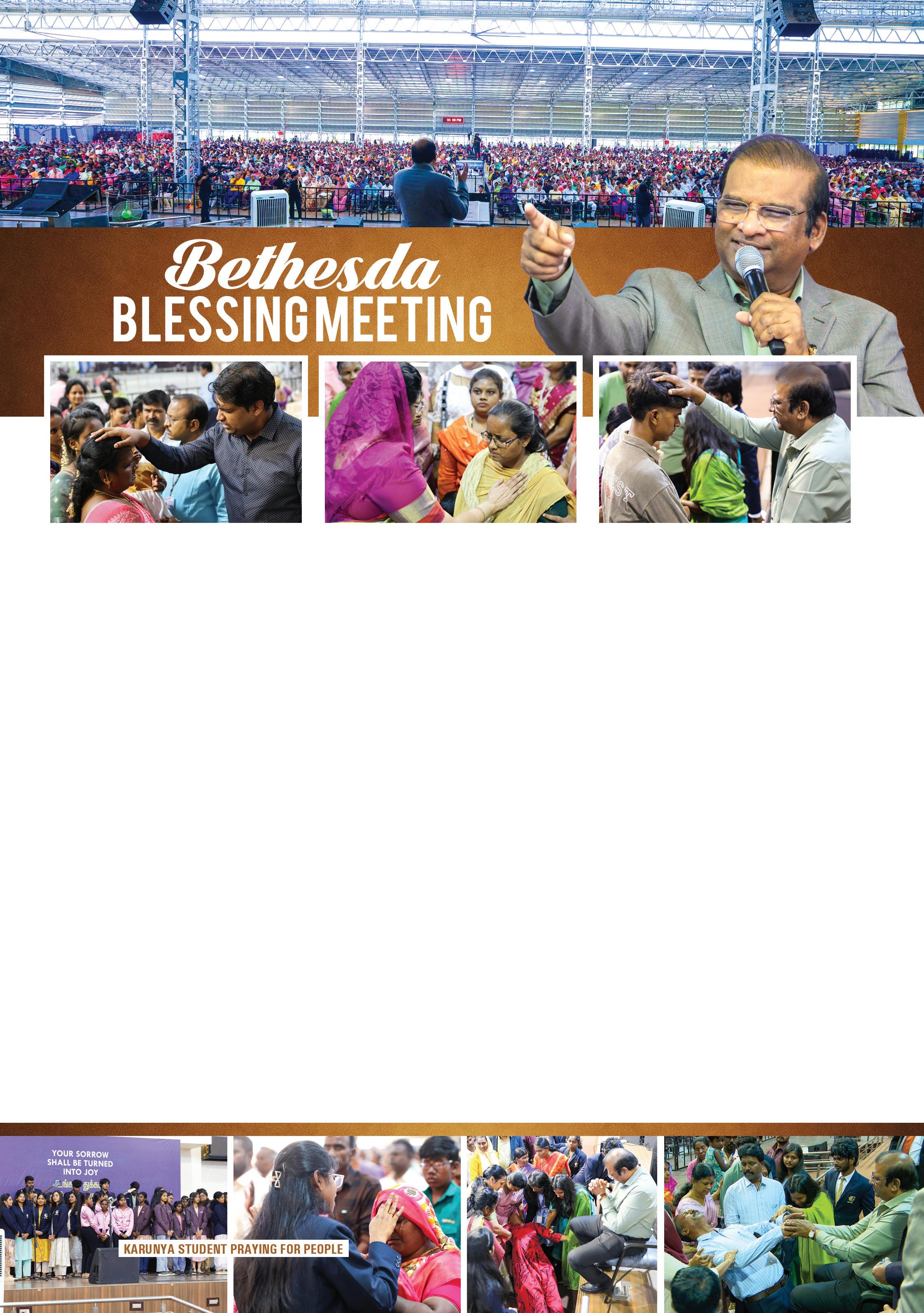 The Bethesda Blessing Meeting held on February 8th evening was a powerful divine gathering where 5000 people from across India experienced the tangible presence of God. T estimonies shared ignited faith in the gathering. Parameshwari from Coimbatore testified how God had called her name in one such meeting and prophesied through me that she will be blessed with a own house and God fulfilled the prophecy. With faith, I ministered from Micah 2:13, declaring that the Lord goes before His people, breaking bondages, healing the sick, and restoring lives through the victory of the cross. As we prayed together, God’s power truly flowed mightily, bringing healing, deliverance, renewal, and overwhelming joy to every heart.