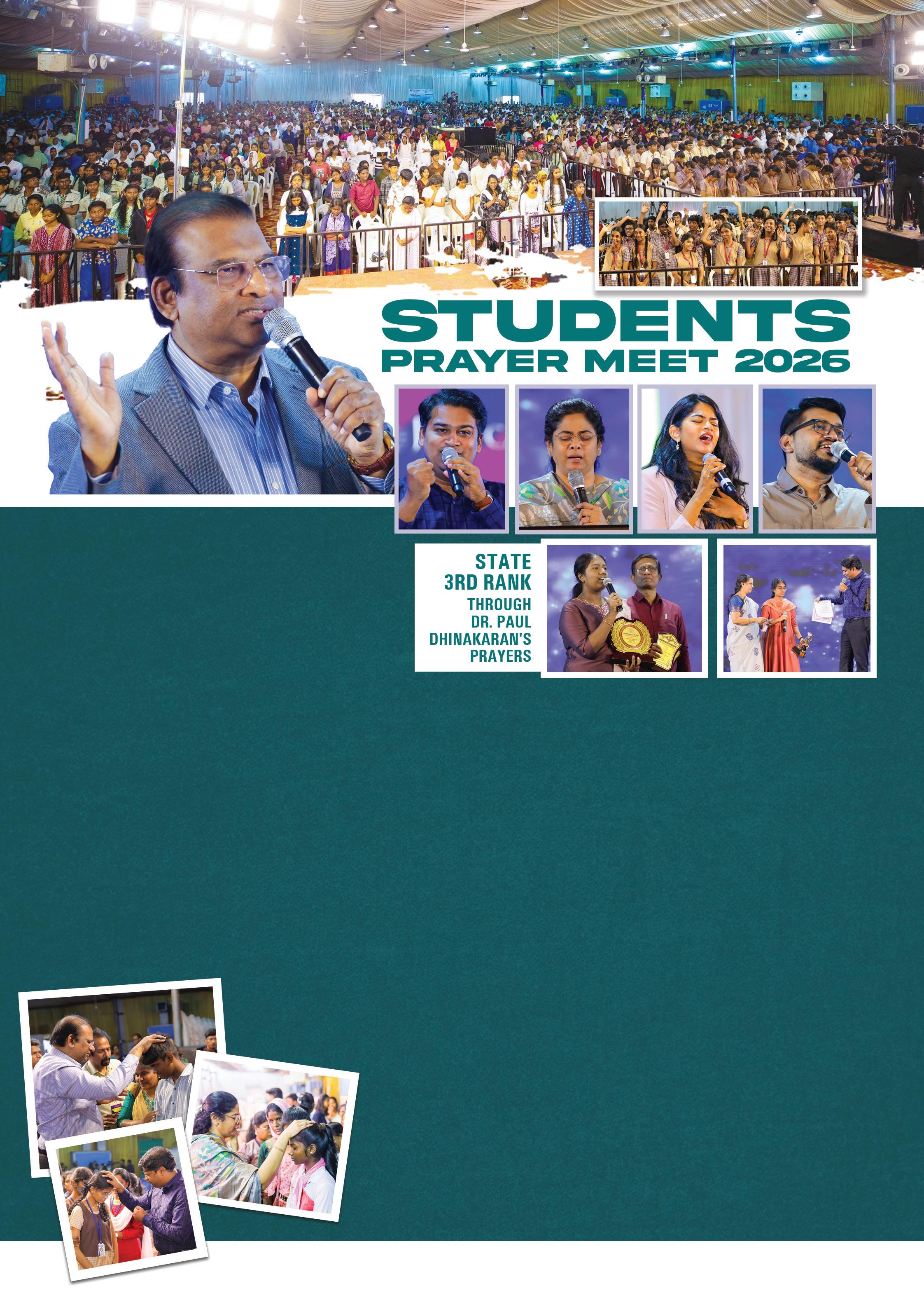 Students Prayer Meet: In recent weeks, we have witnessed the unmistakable hand of God moving powerfully among His people. During our Students Prayer Meet held on the 1st of February, 2026 at Wings Convention Centre, St. George’s School ground in Chennai, around 4000 young lives were touched deeply by the presence of the Lord. Fear gave way to faith, confusion to clarity, and weakness to strength. Many students testified of renewed confidence, peace of mind, and divine help as they prepared for their examinations.