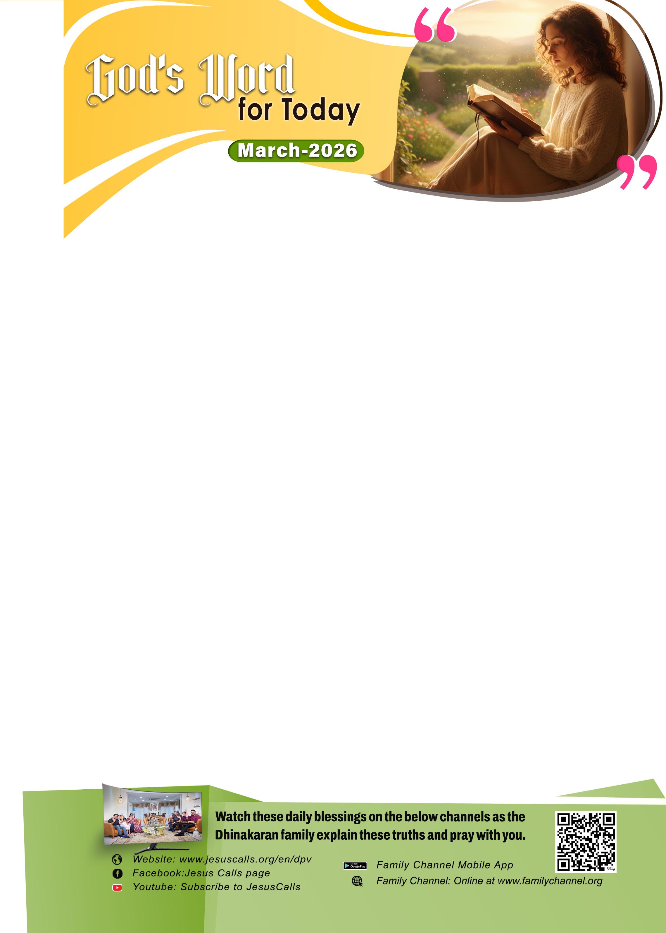 As we thus read in John 5:39, when we read and meditate on the Scriptures reverentially, they would wonderfully lead us towards the divine path of receiving ‘eternal life’. Yes, dear ones! Every day, we need to read the Scriptures, which are the Lord’s words, diligently and reverentially. Then, the Lord would speak to us through His word. He will grant us blessed, divine experiences. What should we do to receive this blessed life?