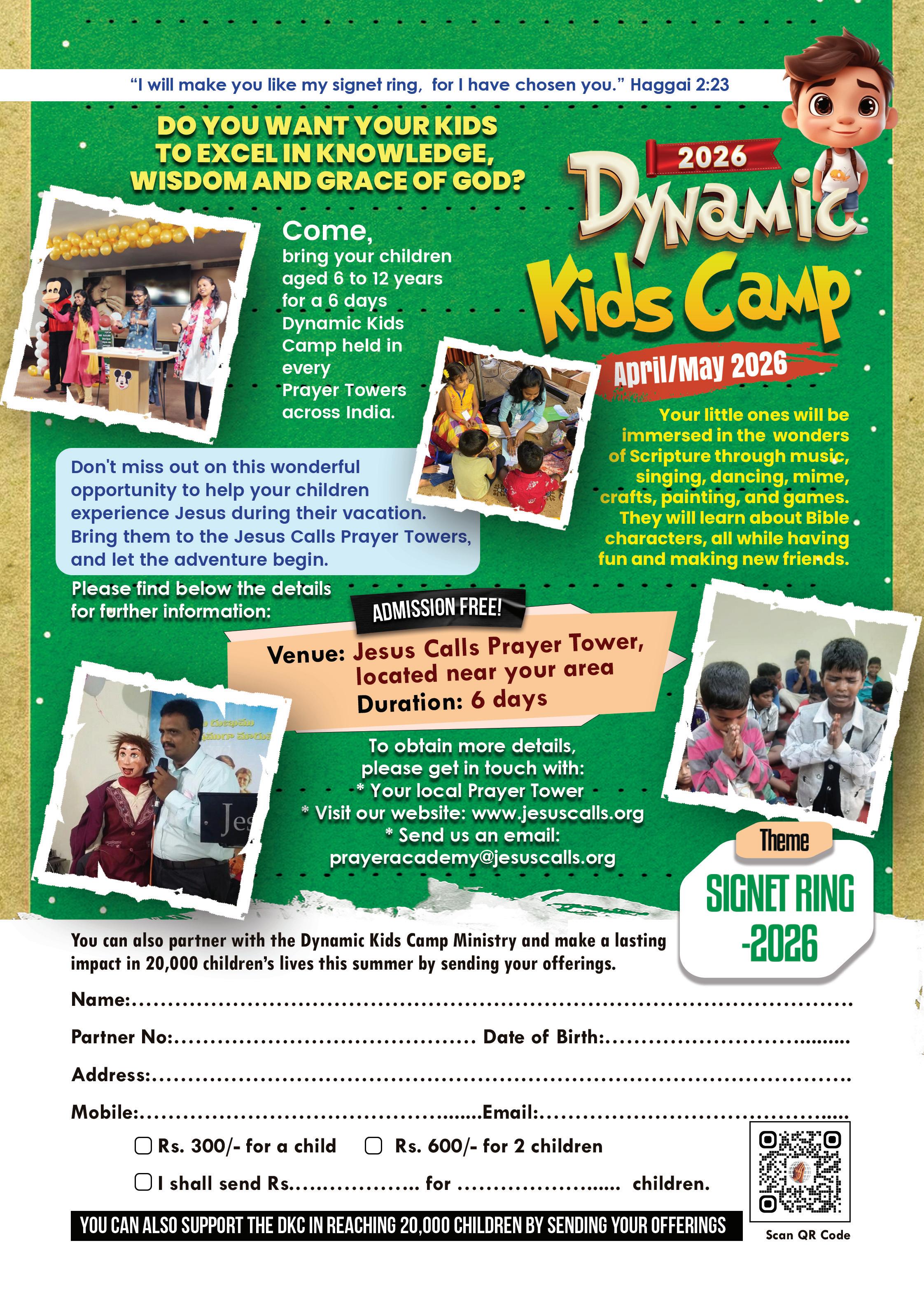 impact your generous sowing made in our ministry last month: At the Prayer Towers, over 1,37,450 visitors experienced the power of intercession, while 3,72,100 callers received comfort and miracles through the Telephone Prayer Towers and 13,030 callers through the Dial-A-Prayer service. Through social media, 2,271,750 visitors were reached, and the E-magazines ministered to 1.5 lakh readers. More than 25,500 letters and 33,850 emails were prayerfully answered with words of God’s love and promise. 3,560 events conducted in Prayer Tower and also 1,08,450 blessed people, and the Lord also moved powerfully through 79 outreach meetings, blessing 1,120 people, and during weekly fasting prayers, 12,650 individuals were provided with food. The recently launched program Children Are a Blessing, under The Family series, has reached more than 1.5 million views, and we have received countless testimonies of how it has blessed people. Truly, God’s name is glorified through your support and prayers as the souls touched keeps increasing.