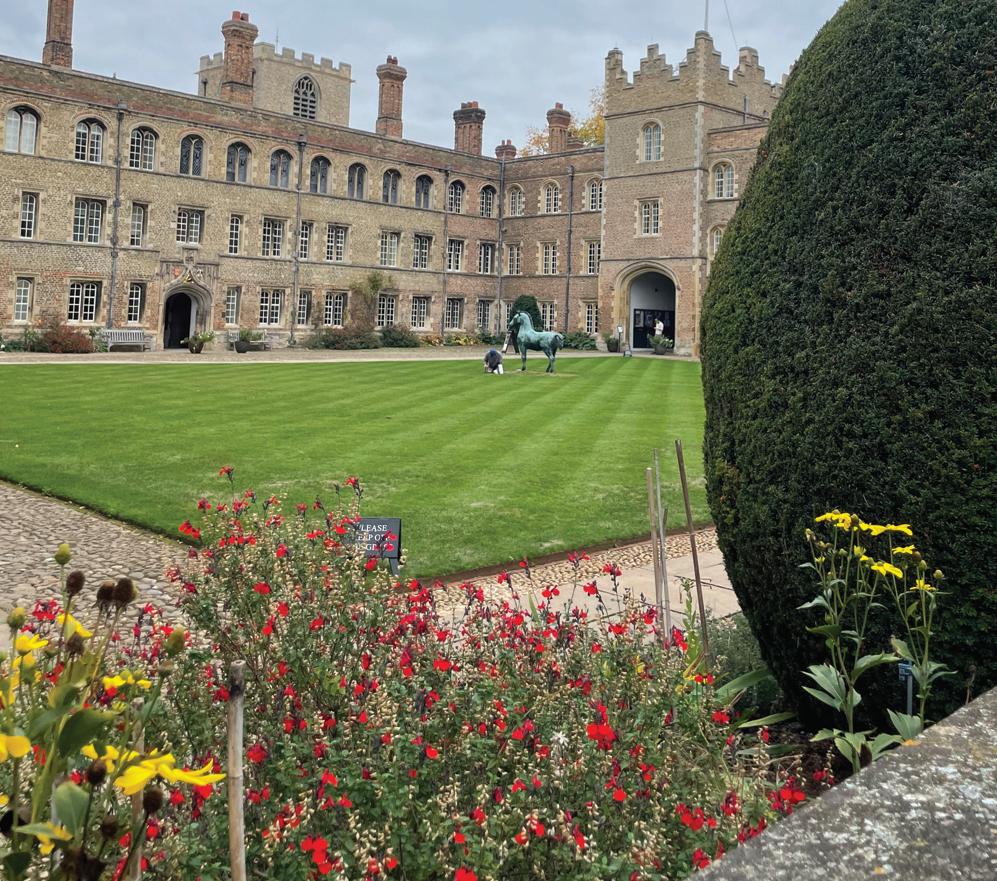 The team have created new planting schemes and redesigned several areas within the grounds and gardens. They have lifted and divided existing beds and introduced a variety of bulbs and new species. Plants produced in the greenhouses are ever increasing, grown by propagation such as seed sowing and hard/softwood cuttings. Hot, drought-tolerant, edible and cut flower borders have been introduced. The aim is not only to create eye-catching displays, but also to show how planting can support wellbeing and biodiversity. As you walk through the College, you might brush against plants that release a subtle fragrant scent or feel the tenderness of the foliage. Pots have been positioned near the archways to achieve this. The wildflower meadow at Library Court produced an impressive display and introduced a wide variety of biodiversity. Coming into its third year, the team are intrigued to see which new plant species, colours and wildlife will appear.