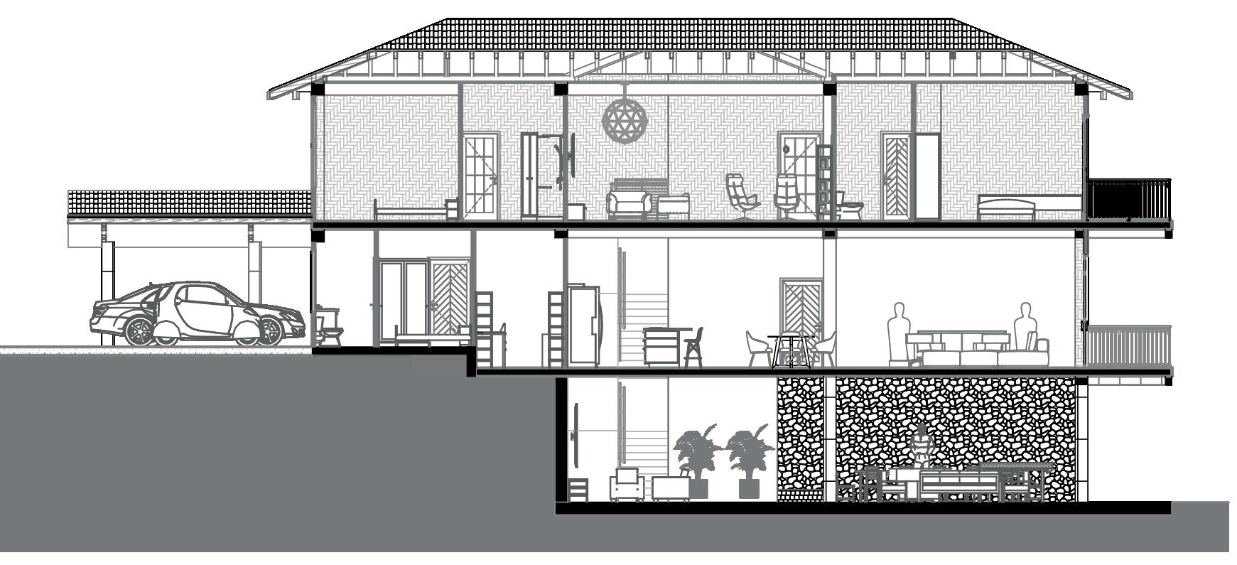 Esta vivivienda está diseñada pensando en la convivencia y comodidad de las familias de un par de hermanos abogados que buscan compartir un espacio en el cual puedan convivir, trabajar y pasar tiempo de calidad con sus familias. El planteamiento de la vivienda se desarrolla en dos niveles y un sótano. Adaptandose perfectamente a la topografía de su terreno