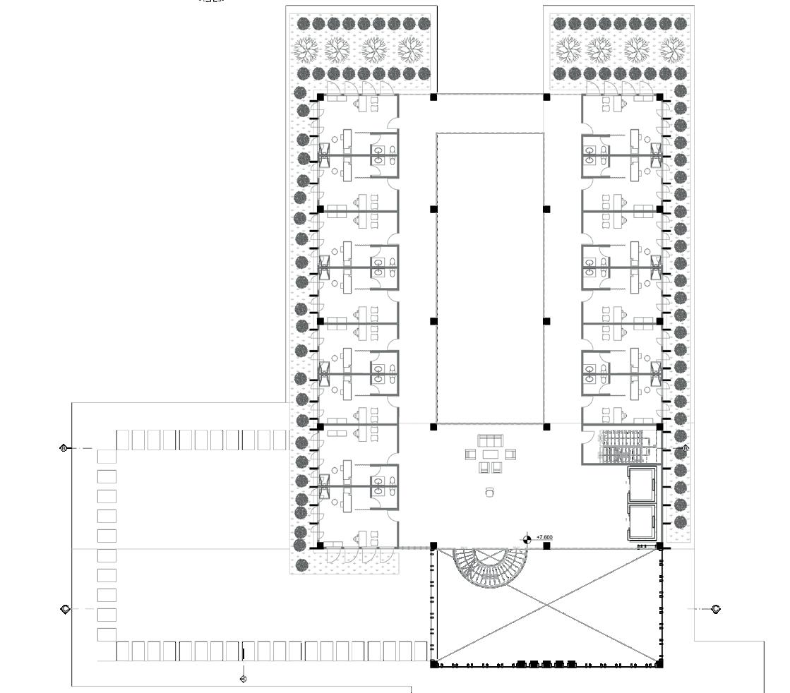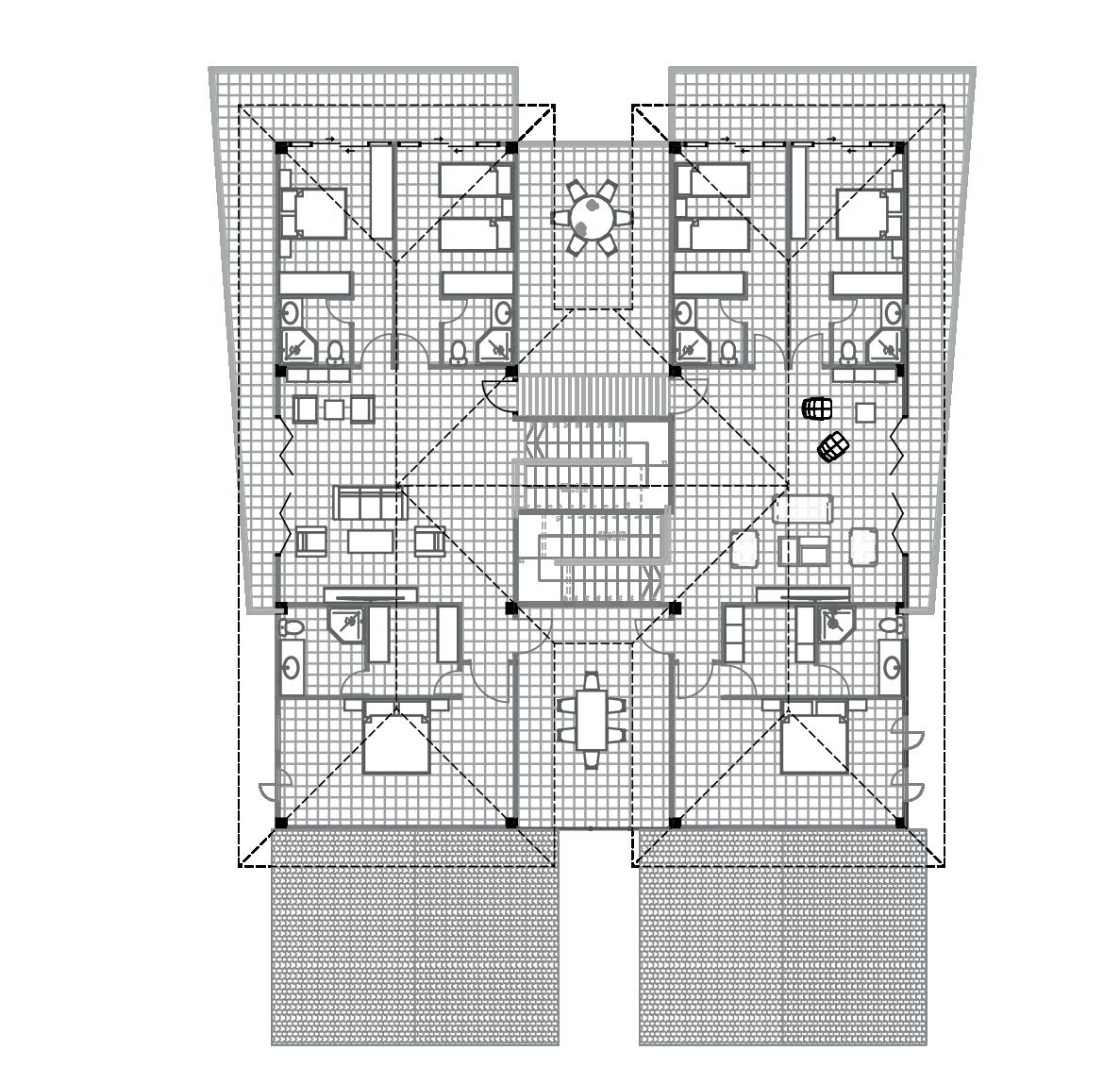 En este nivel se desarrollan los espacios de descanso de ambas unidades.