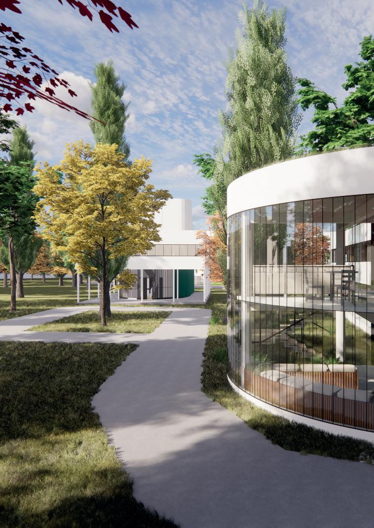 El diseño del mismo está basado en la arquitectura biofílica y gira en torno a un jardín central con una altura triple. La materialidad del mismo esta basada en materiales modernos como el concreto, madera, vidrio y acero corten.