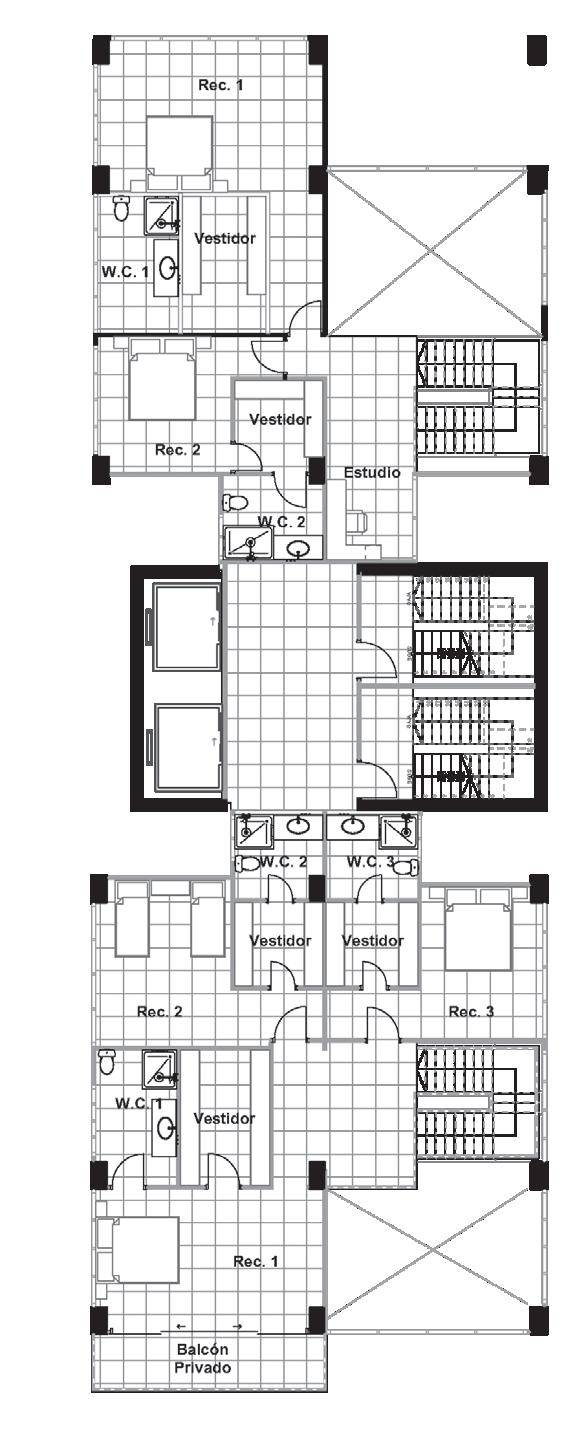 En estos niveles se encuentran las unidades de tres recámaras. Existen dos modelos de este tipo.
