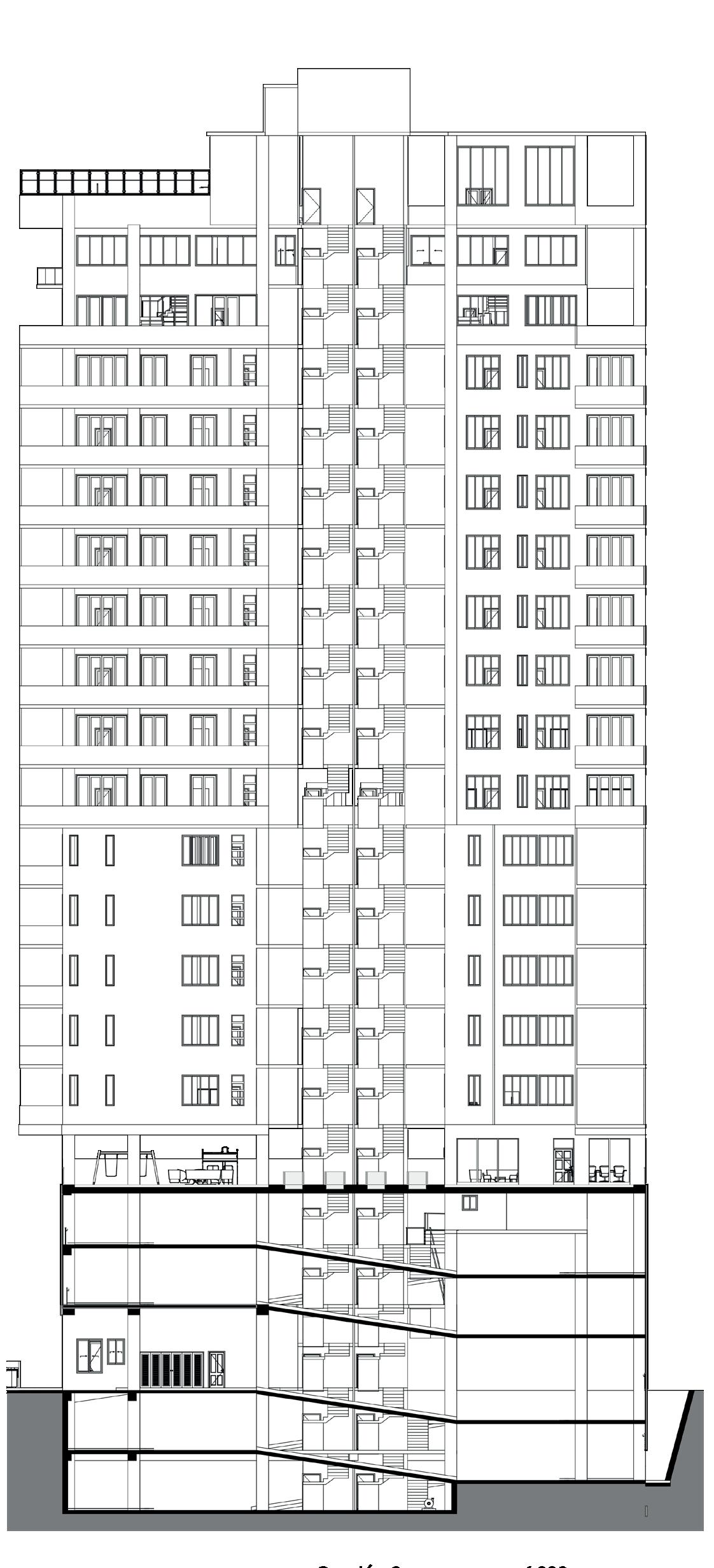 El edificio cuenta con 38 unidades distribuidas en 17 pisos, listas para albergar todo tipo de familias. Se desarrollaron 6 diferentes metrajes de apartamentos con 1,2 y 3 recámaras. Cada uno de estas unidades cuenta con acabados de lujo y equipamientos de última tecnología.