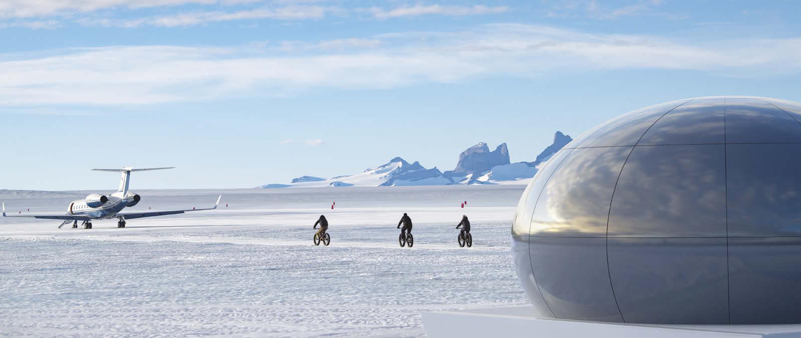 luxurious—and futuristic—opportunity to visit the White Continent is now here with the opening of Echo, the newest camp by White Desert, a power player in the polar travel arena and the only luxury hospitality company in the world to fly business jets to Antarctica. The camp is located inland of the continent’s north coast, three miles from Wolf’s Fang, a sister camp that opened in December 2021 on a glacier in Queen Maud Land. A specially treated 8200-foot runway is reserved exclusively for private jets, either White Desert’s Gulfstream 550 or those of camp guests (the likes of Prince Harry, Bear Grylls, Buzz Aldrin).