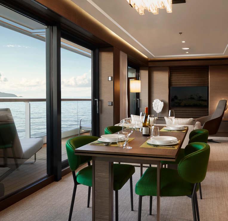 On board you’ll find amenities that rival any landside hotel or ac commodation: in-suite dining, Michelin star-inspired menus, personal concierge services, Wi-Fi, live entertainment and engaging lectures are but a sampling. A marina-style platform provides guests with easy, breezy access to watersports. When it’s time to wind down, a massage at the luxury spa makes for a splendid afternoon.