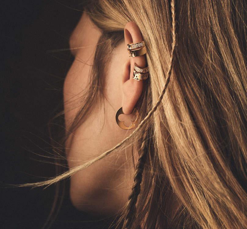 Empreinte is designed with the intention to suggest the excitement of introspective exploration. The collection is well defined as one that proudly displays Louis Vuitton’s most recognizable emblems. This is the ear cuff your mother could only dream of in jest, styled alongside delicate chain necklaces, and a hypnotic selection of rings intricately designed to be layered with one another.