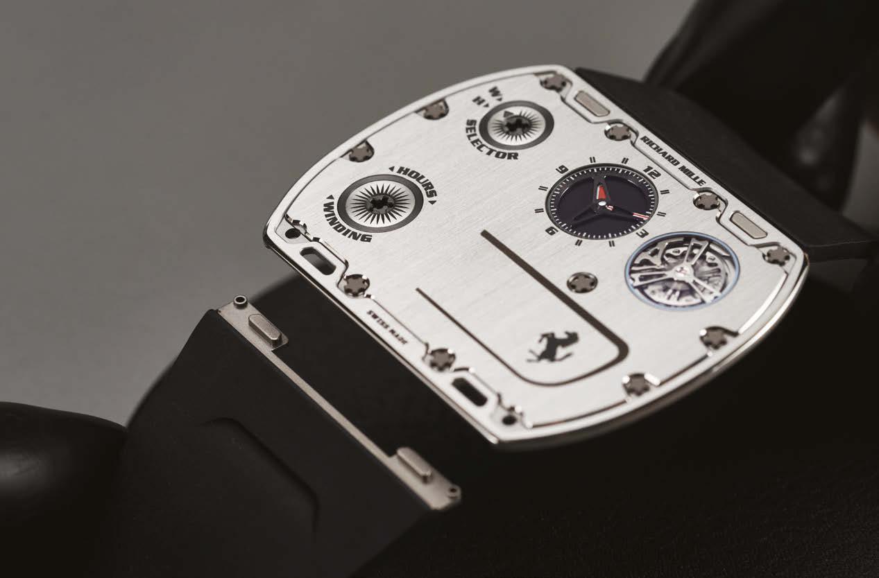 An off-center display at 10 o’clock tracks a second time zone. Two additional rings are engraved with words that are meaningful to the Atelier. The case of this technical masterpiece is crafted in titanium. Greubelforsey.com