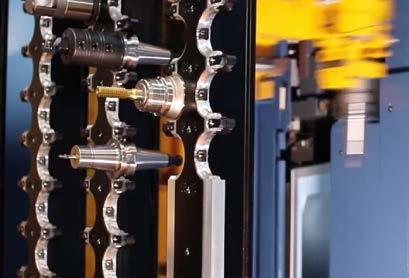 De Powermill HPC3 onderscheidt zich door het systeem van automatisch verwisselbare freeskoppen. De universele bi-roterende kop levert 38 kW vermogen, een koppel van 1.000 Nm en een toerental tot 6.000 rpm, en is geschikt voor complexe vijfassige bewerkingen.