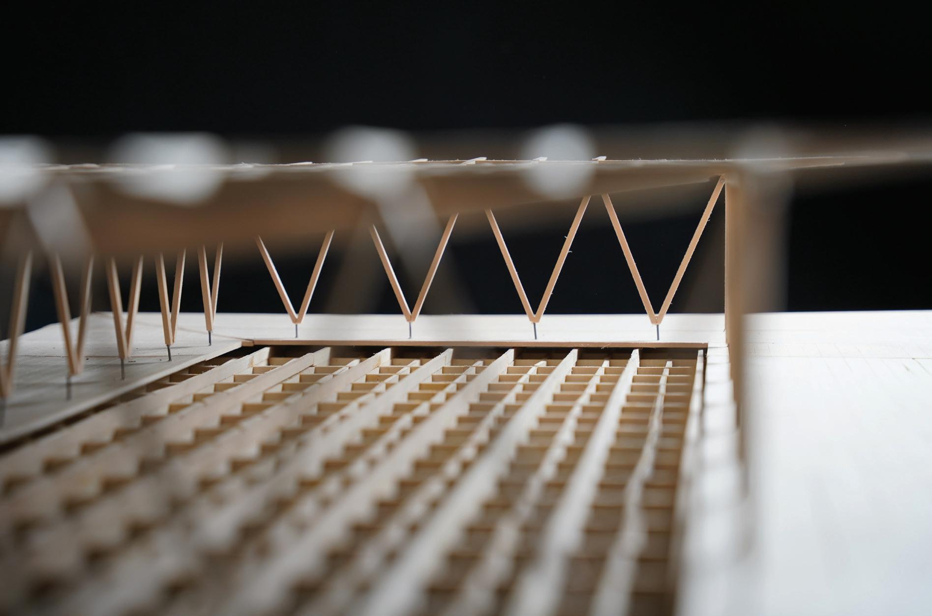 A Study in Scalar Progression transforms Ithaca’s natural elements into an architectural journey, where the design process - from material studies to furniture prototypes to built form - becomes embedded in the visitor’s experience. Emerging from its sloped site, the gallery mirrors local gorge formations, with progressively scaling columns that guide visitors through increasingly dramatic spaces. The project also introduces vital community spaces that cascade down the hillside, offering Ithaca’s residents new gathering places that maintain a profound connection to the region’s natural character.