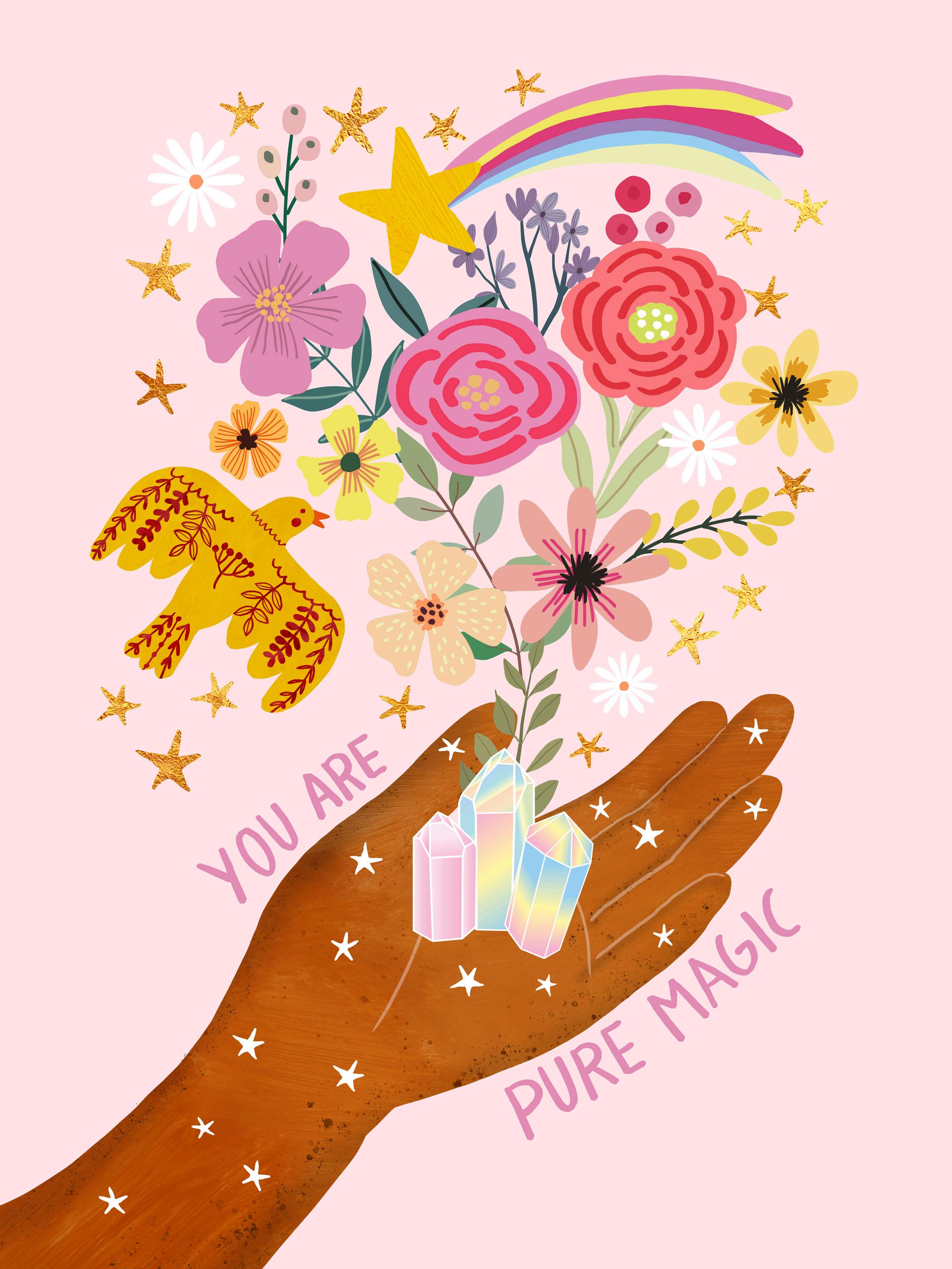 Shelaterdiscoveredyoga,meditationand positivethoughts.Thesetoolsnaturallywent ontoformpartofherillustrations.