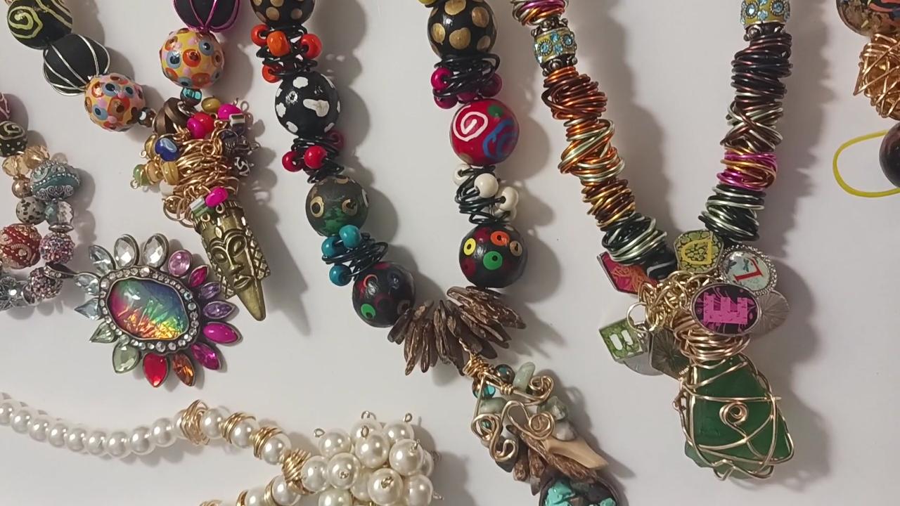 Owner/Operator,SandraLaraine Coleman(Slc)isaself-taught jewelrydesigner.Shebegan makingjewelryinherlivingroom 15yearsagoandfellinlove.Itall startedwhensheneededtofind anhonestwaytoearnextra incomeandstillbeavailablefor herdaughter'srecitals,basketball games,homeworkanddinner.The firstitemsweresimpleseedbead ankletsandbraceletsthatsoon graduatedintojewelrymadewith naturalgemstonesandwire.