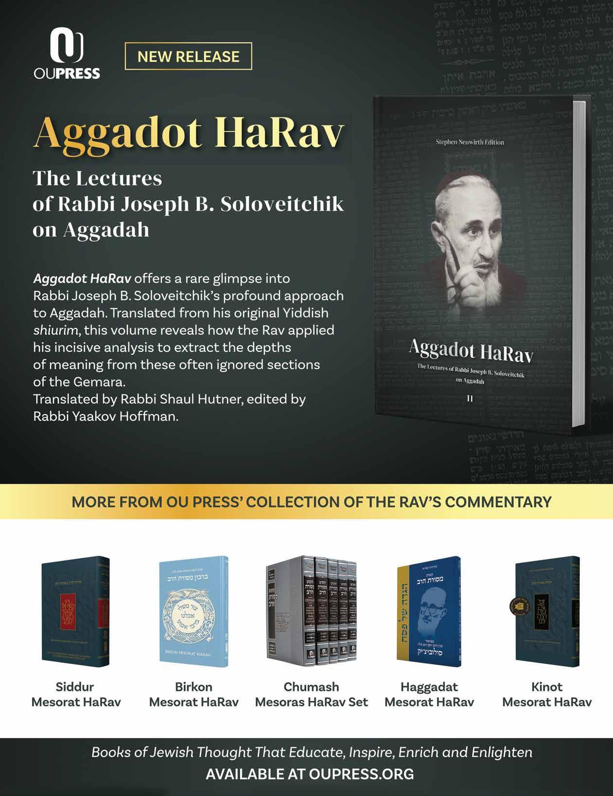 Aggadot HaRav: The Lectures of Rabbi Joseph B. Soloveitchik on Aggadah, Stephen Neuwirth Edition Edited by Rabbi Yaakov Hoffman