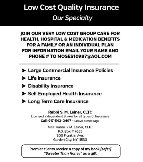 Classified Deadline: Monday 5:00PM classifieds@fivetownsjewishhome.com