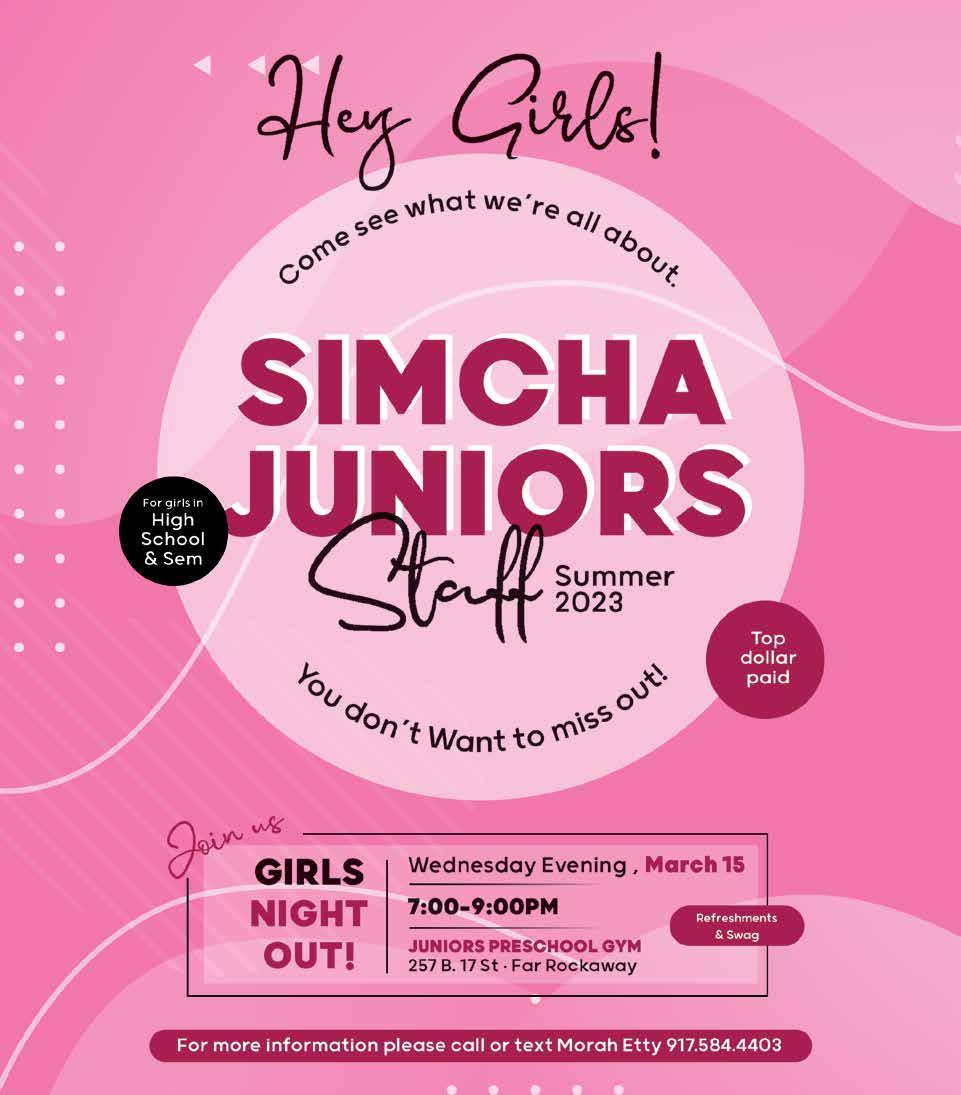 A YESHIVA IN QUEENS is looking for an experienced part/ full time secretary, 2-year-old morah, kindergarten morah, kindergarten morah assistant and Pre-1A English teacher for the 2022-2023 school year. Nice and timely pay. Please email resume to mshelt613@gmail.com or call/text 718-971-9799.