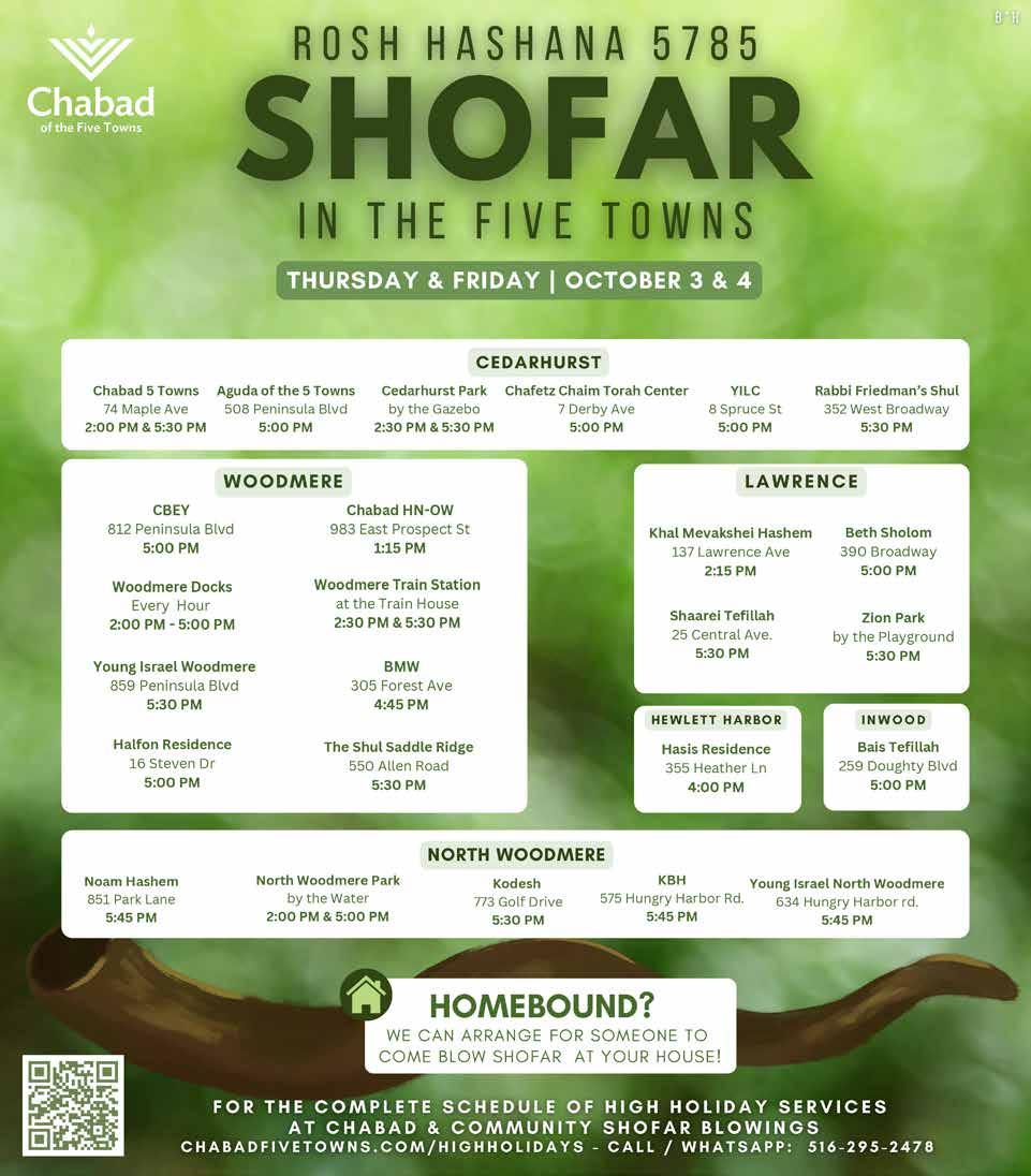 Classified Deadline: Monday 5:00PM classifieds@fivetownsjewishhome.com text 443-929-4003