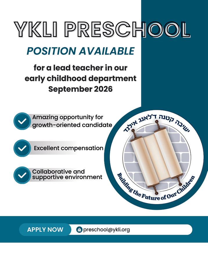 In Great Neck, NY, is seeking general studies teachers for both the elementary and middle schools, for the upcoming academic year. Mon-Thur afternoons. Competitive salary, warm and supportive environment. Send resume to m.kalati@kolyaakov.org