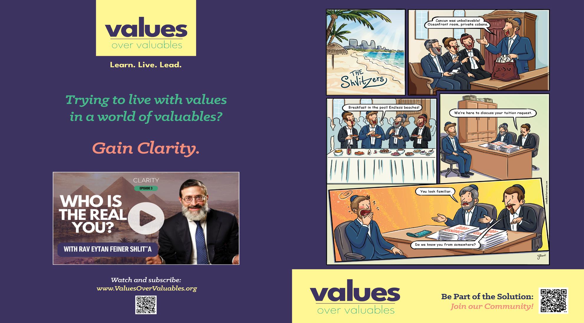 child finally found his parents. Rav Pessin brings sources to demonstrate the benefits of watching one’s eyes. The Rishon, Rav Yehudah HaChassid, author of Sefer Chassidim, says (Siman 495) that if one struggles with watching their eyes and puts in great effort to overcome it, then their children will see lengthier days. The Chasam Sofer, in the name of his rebbe, Rabbi Nosson Adler, says that one who guards his eyes won’t experience suffering that’s associated with passing away. Reb Chaim Palagi, the greatest halachic decisor of his generation, who lived about 200 years ago, gives a segulah based on the verse (Tehillim 145:15), “The eyes of all look to You expectantly, and You give them their food when it is due.” If our eyes are focused towards G-d, and not inappropriate gazes, then our sustenance comes. Finally, Rav Pessin gives his own source. The last verse in the Torah contains the words (Devarim 34:12), “To the eyes of all Israel.” And the first word that we begin the Torah with is Bereishis, which, if split into two words, reads as “bar” – bread, “asit” – I will give. If we guard our eyes, G-d will shower us with parnassah