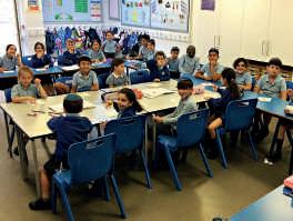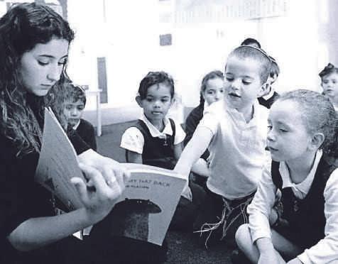 the Hebrew alphabet on display on a classroom wall, along with some of the school’s key values, including the words “Respect” and “Ready”.