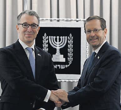 President Isaac Herzog welcomed Simon Walters, the new British ambassador to Israel, on Tuesday, writes Jenni Frazer.