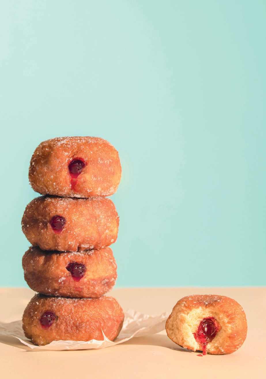 The first known recipe for a jam doughnut appeared in 1532 in the German cookbook Kuchenmeisterei. Sadly not a kosher option, as it was made by packing jam between two round slices of bread and then deep-frying it in lard.