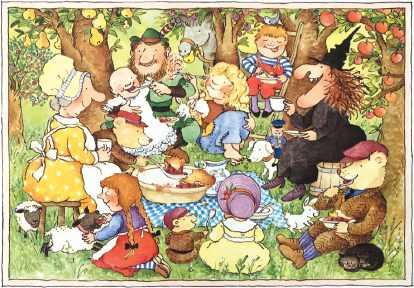 ABOVE: Curious George gets mischievous with a paintbrush BELOW: A page from Each Peach Pear Plum by Allan and Janet Ahlberg