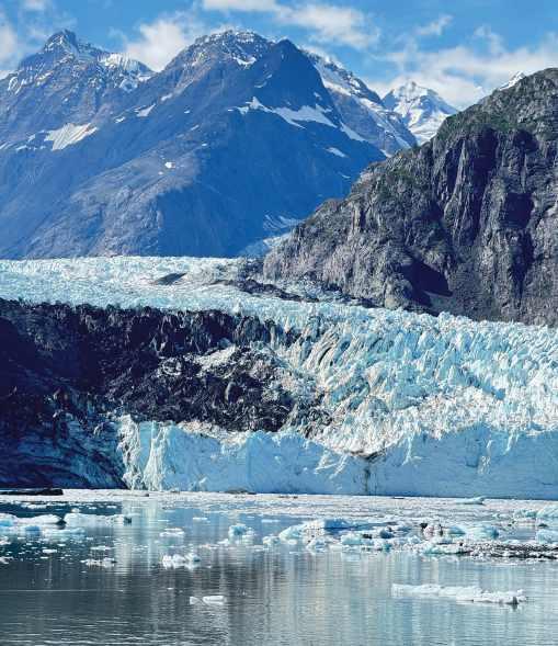 We’ve been wowed by the scenery thus far, but nothing prepares me for the awesome spectacle that is Glacier Bay National Park. We’re blessed with clear, sunny skies and park ourselves on deck to observe the massive, dazzling mountains of ice, and listen out for the booming sound of a block of ice breaking loose and crashing into the water, a process known as calving.