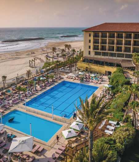 The Daniel is part of the Tamares Hotels group and their properties prioritise the Israeli shoreline. So travellers who like the Tel Aviv energy but prefer sleeping somewhere calmer will enjoy The Daniel, which sits on the sand in Herzliya. The atmosphere is relaxed, with wide sea-facing terraces, a dependable beach café and a pool area that sits close to the water. Rooms are spacious, many with balconies, and are an easy fit for families. The marina is a short walk, filled with restaurants, sailing schools and quiet corners for reading or people-watching. tamareshotels.com