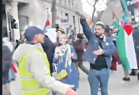 Social media images from the event also showed a man appearing to perform a Nazi salute, alongside banners calling for the de-proscription of Hamas and Hezbollah.