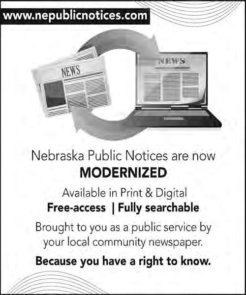 HELLO NEBRASKA! Introducing www.nepublicnotices.com, a new public notice website presented as a public service by all Nebraska newspapers. Free access, fully searchable – because democracy depends upon open government and your right to know.