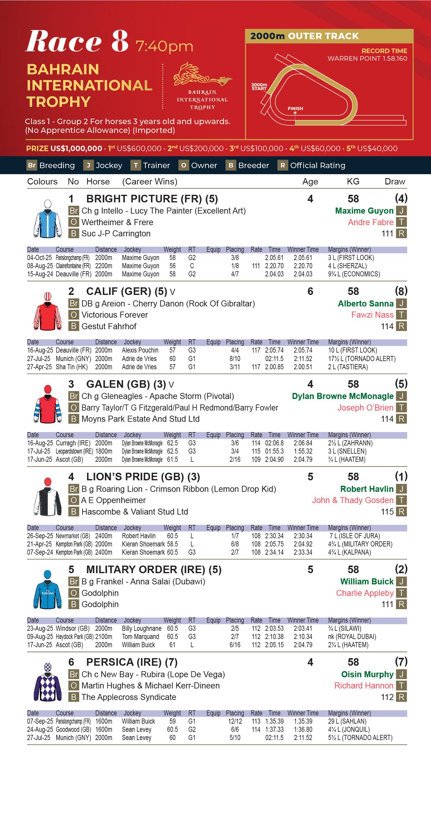 Total Race Value BD1500 Prize money 1st BD900, 2nd BD300, 3rd BD180, 4th BD120. For classes 3, 4 & maiden horses, 4 years old and upwards (WAHO)