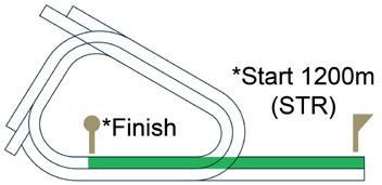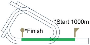 The track the horses are running on. The distance the horses will travel from start to finish during the race displayed in meters.