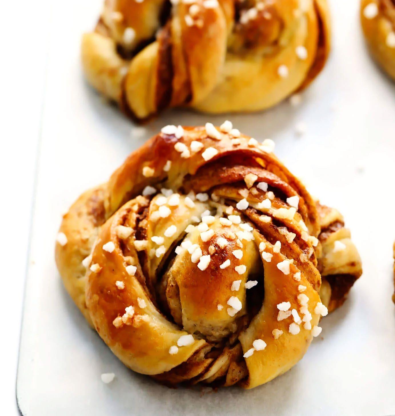 Mix the dough. In a separate large mixing bowl, briefly whisk together the flour, sugar, yeast, ground cardamom, and salt until combined. Add the warm milk mixture and stir until the dough begins to form. Turn the dough out onto a floured surface and knead for 7-10 minutes, or until the dough is smooth and soft.