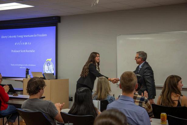 “In September, our board coordinated the YAF 9/11 Never Forget project At this event, we invite students to join us as we place an American flag on the lawn for every life lost on September 11 , 2001 This project provides a powerful visual to both the students and staff on campus and serves as a reminder of the tragic attack that occurred on American soil 24 years ago We also had the privilege of hosting Liberty's own Professor Roenicke on the 24 Anniversary of 9/11. He gave his firsthand account of 9/11 when he worked in the Pentagon His story was a convicting narrative of the fallen nature of man, and the grace and forgiveness we as believers should reflect, as we are shown grace and forgiveness every day ”Madison Kelly, YAF President and Helms School of Government 327 TA th th