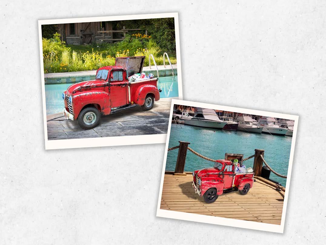 The Little Big Red Pick-Up Truck No: E43007R Dimensions: H 40.0 cm W 32.0 cm D 74.0 cm H 15.8 in W 12.6 in D 29.1 in